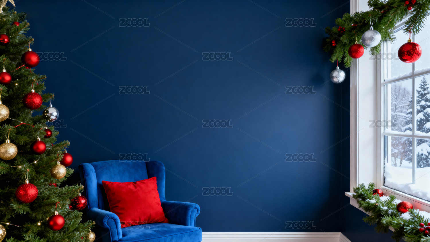 绿叶,装饰,房间,光线,树干,圣诞树,窗户,雪景,红球,金球