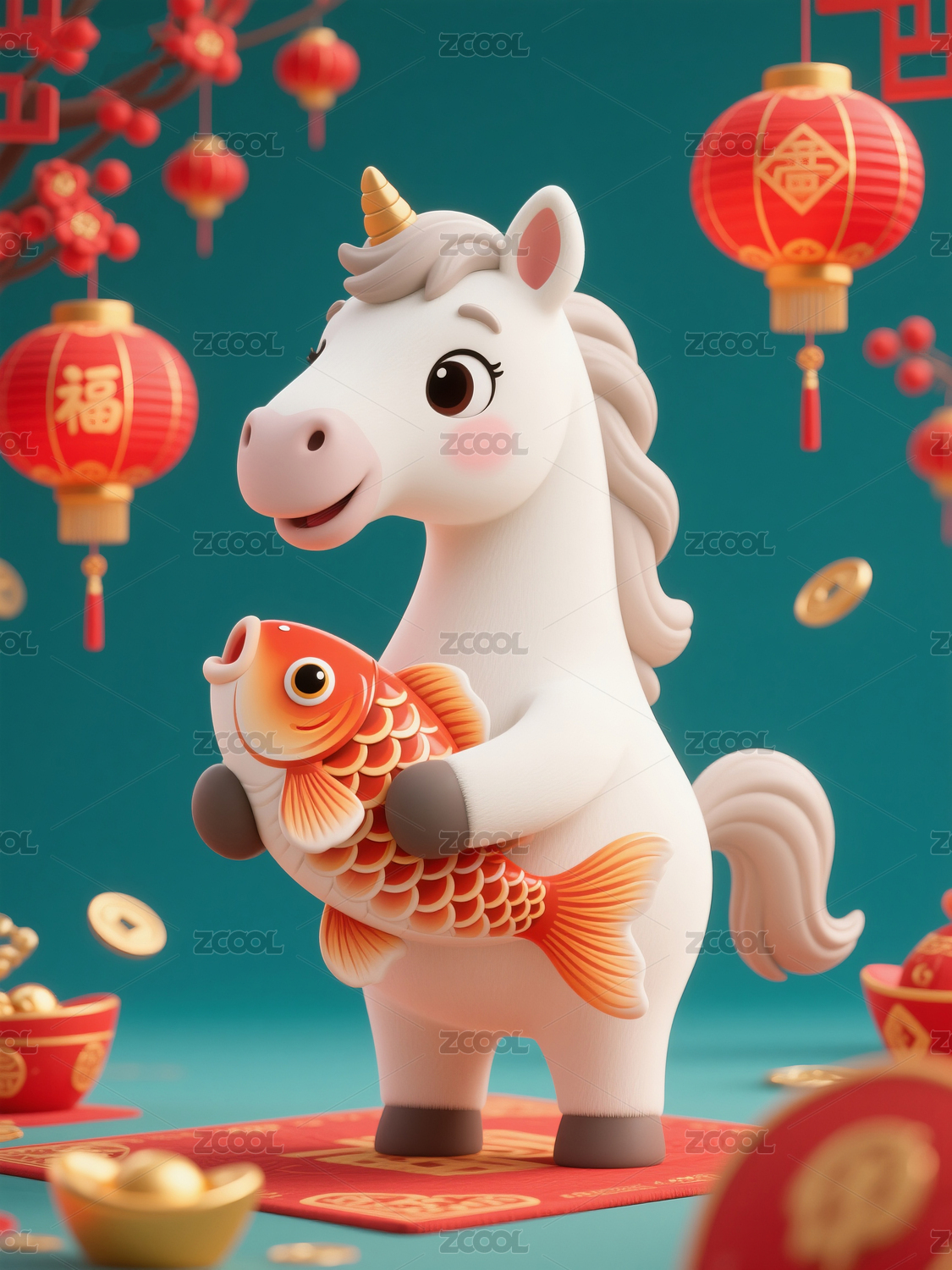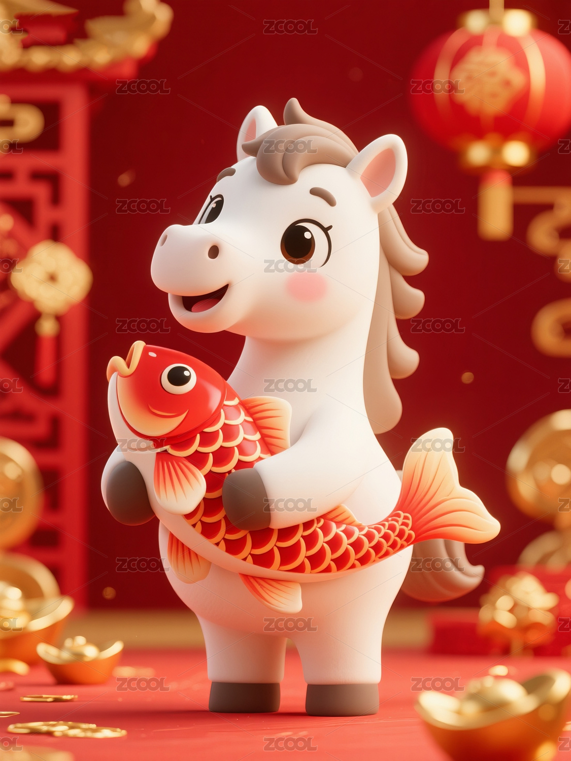 马,马年,春节,新春,新年,喜庆,欢乐,舞狮,马上有财,马上发财
