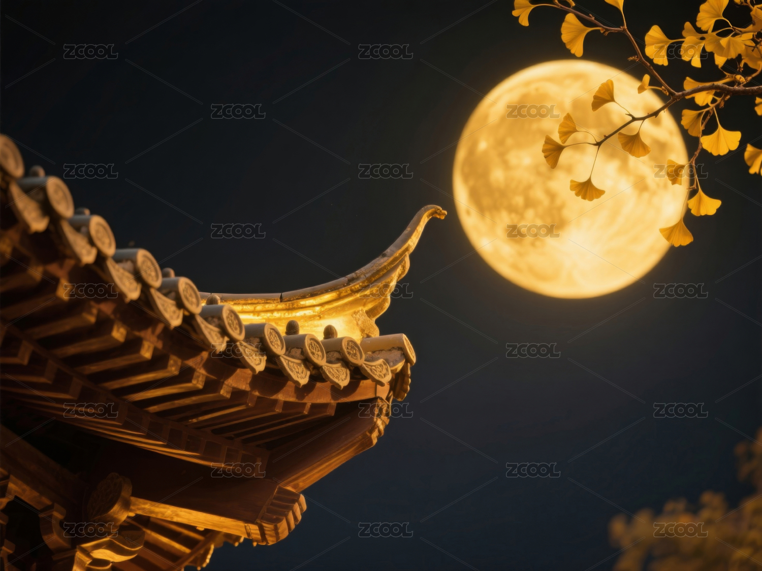 古建筑屋檐与明月