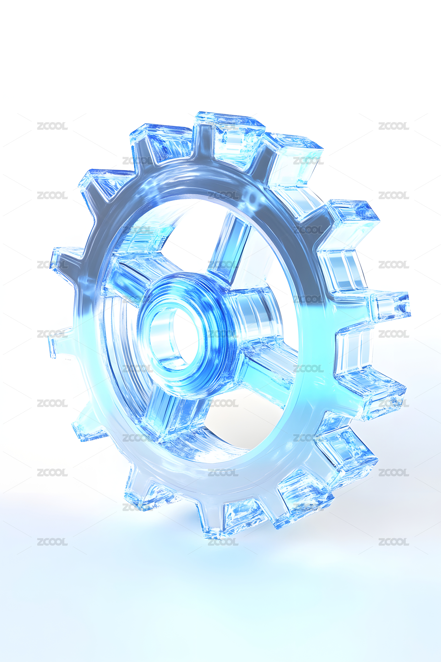 白色背景前的透明玻璃齿轮图标
