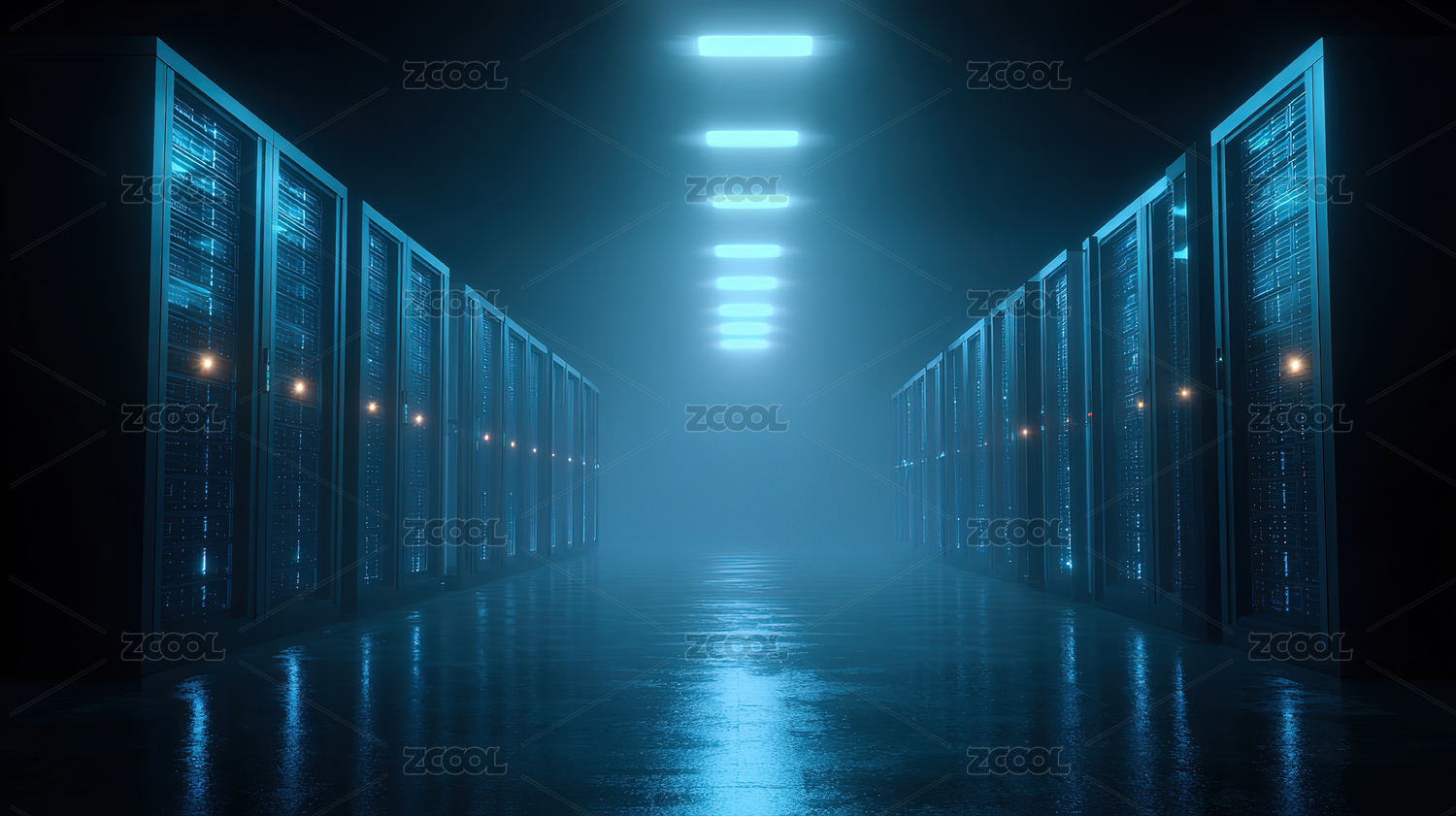 黑蓝灯光服务器走廊