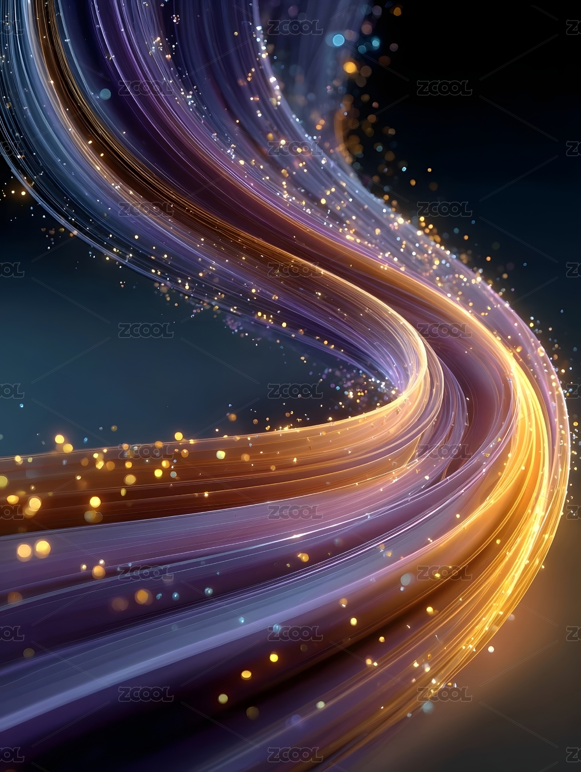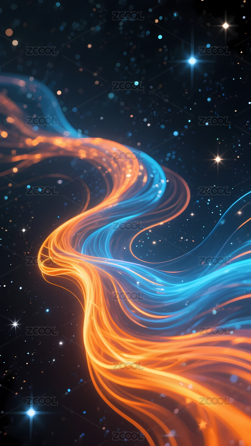 曲线,动态,黑色,蓝色,梦幻,明亮,光带,橙黄,光点,深邃