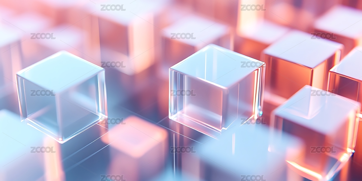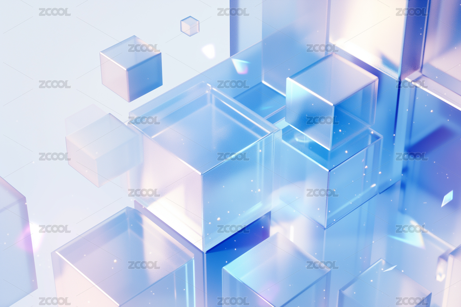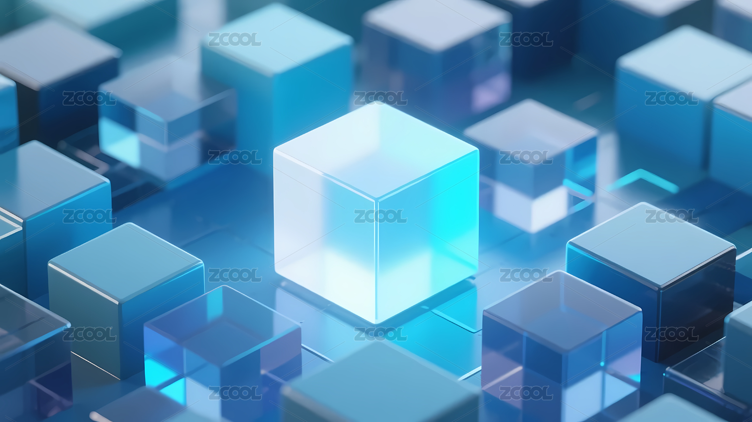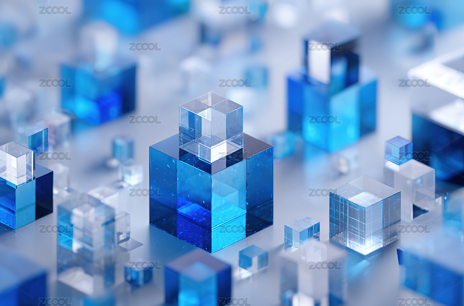 抽象绿色方块晶体结构城市建筑3D立体插画