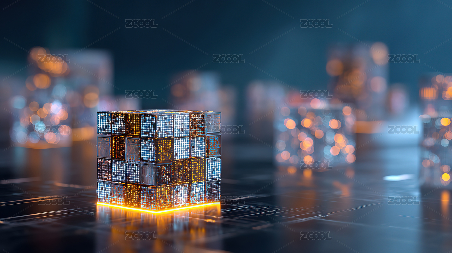 科技立方体城市光影氛围