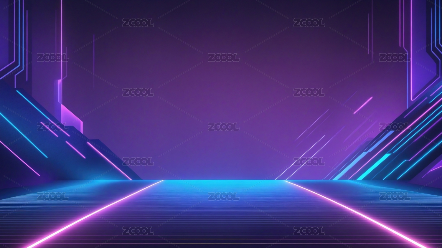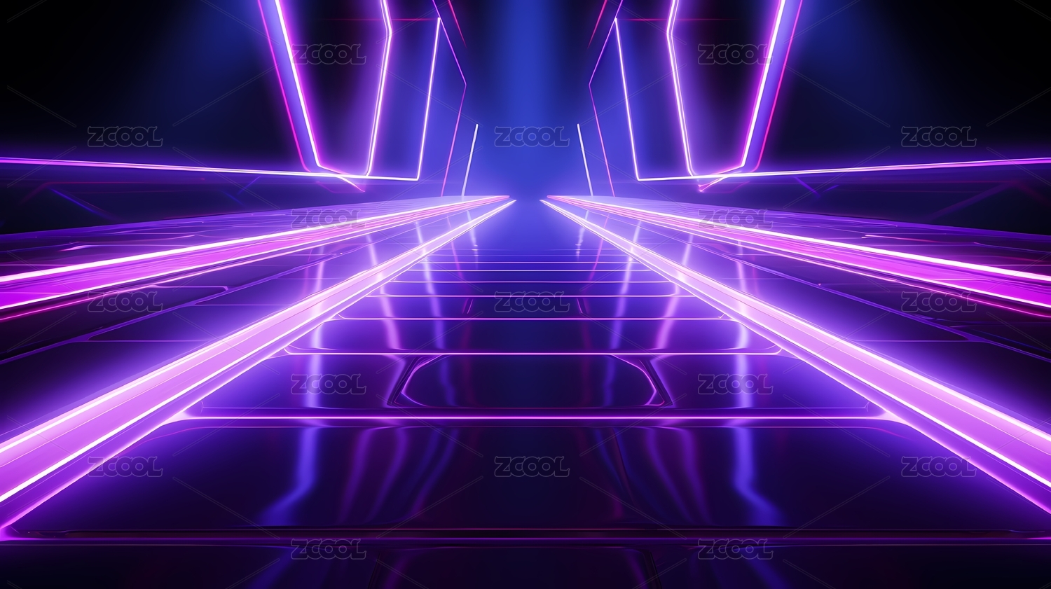 蓝紫霓虹灯的未来视界