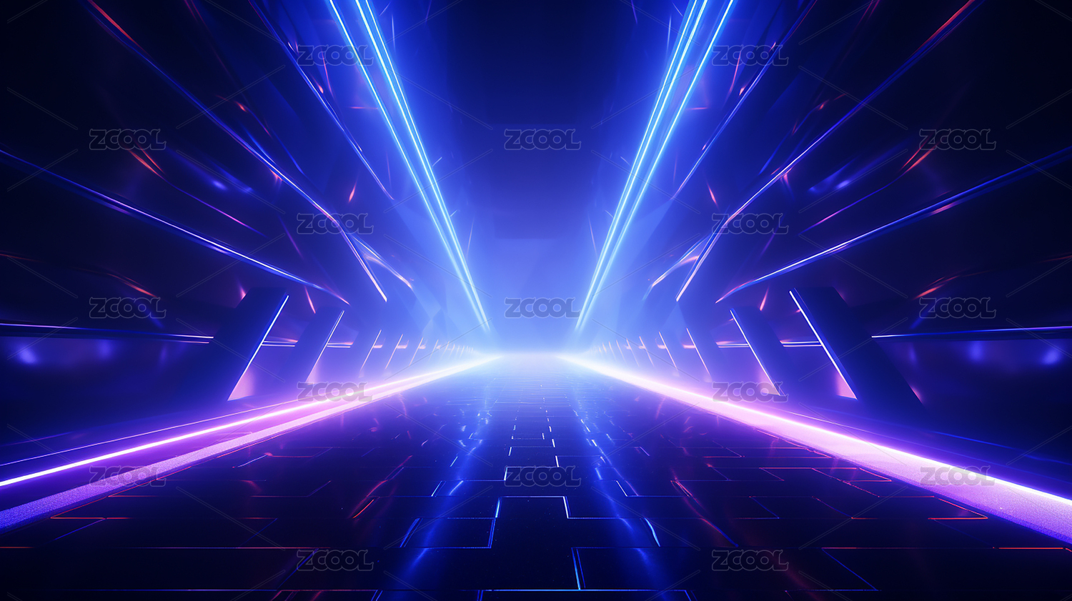 霓虹光束交汇的抽象空间