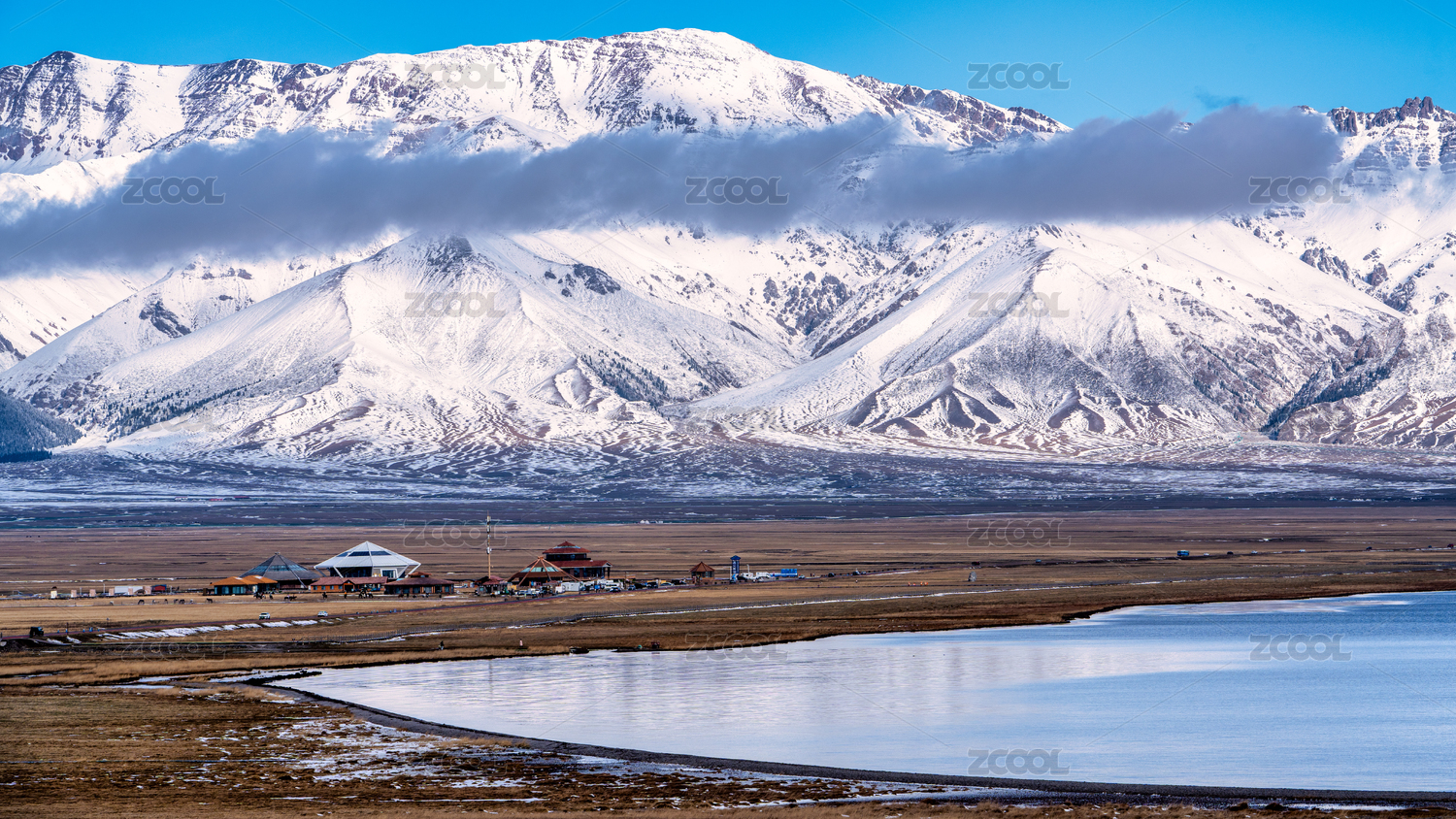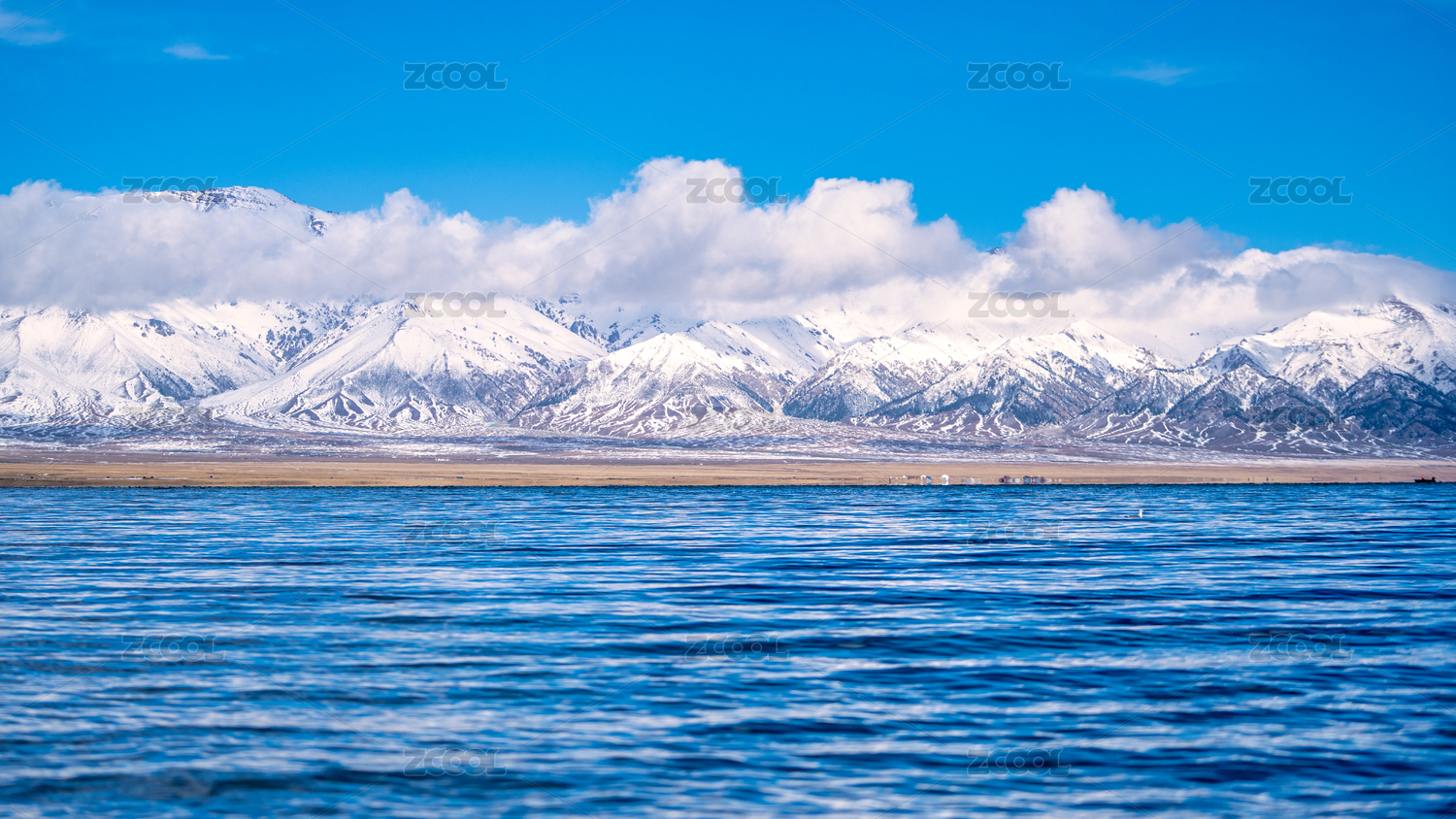 中国新疆博尔塔拉赛里木湖的冬季风光