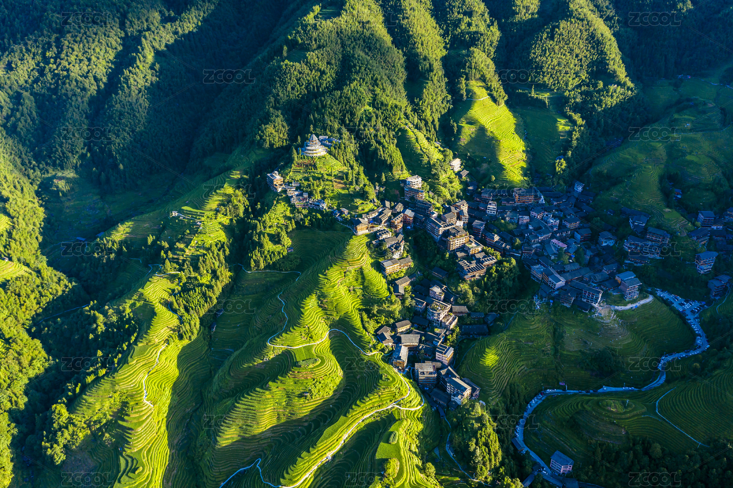 广西夏季阳光下绿色的龙脊梯田