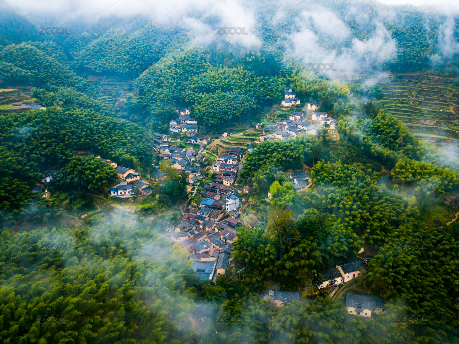 航拍浙江杭州临安区龙门秘境石门村山间村落
