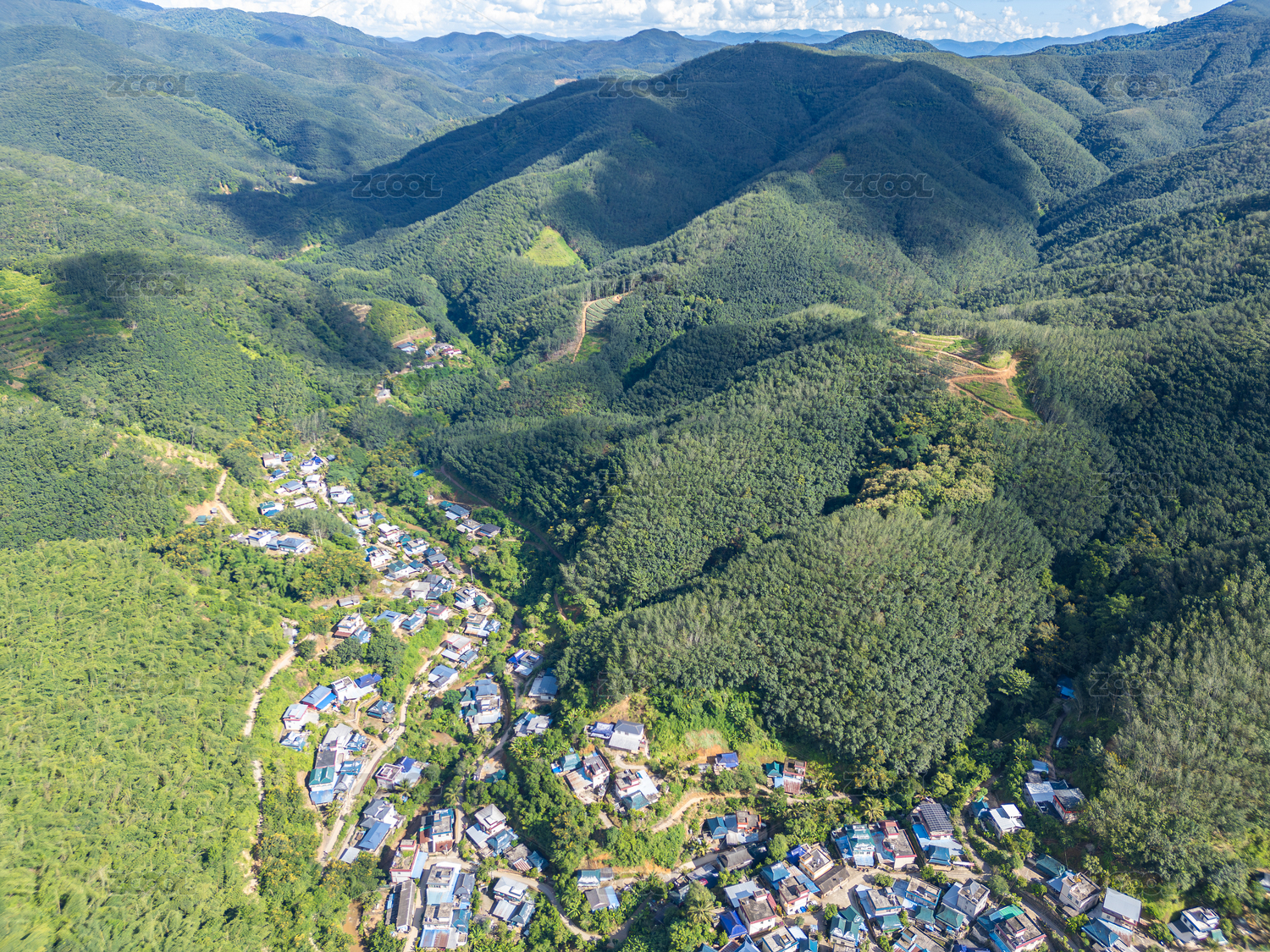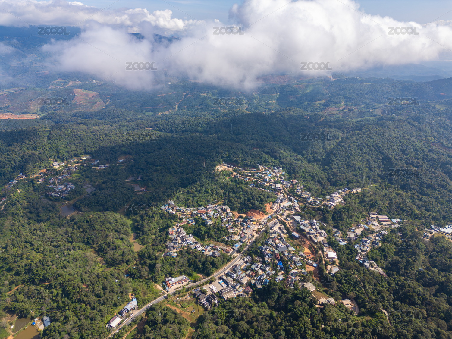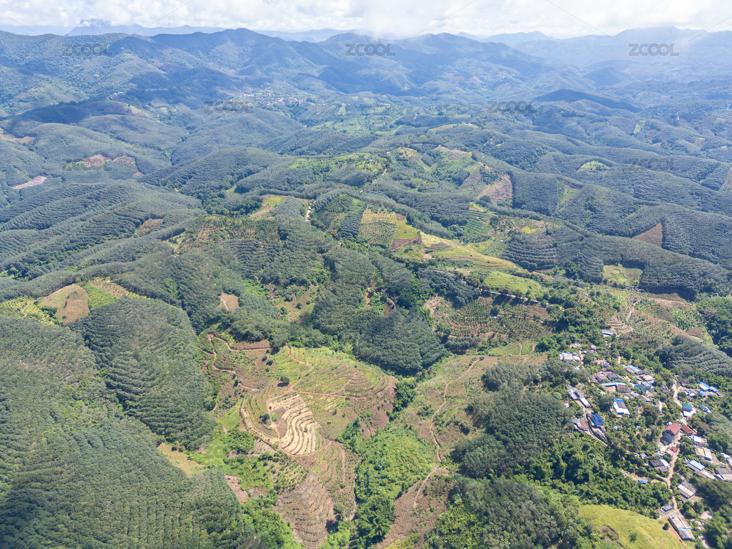 航拍视角,西双版纳,村寨,乡村,田园风光,农耕,风景,自然,农业,地形