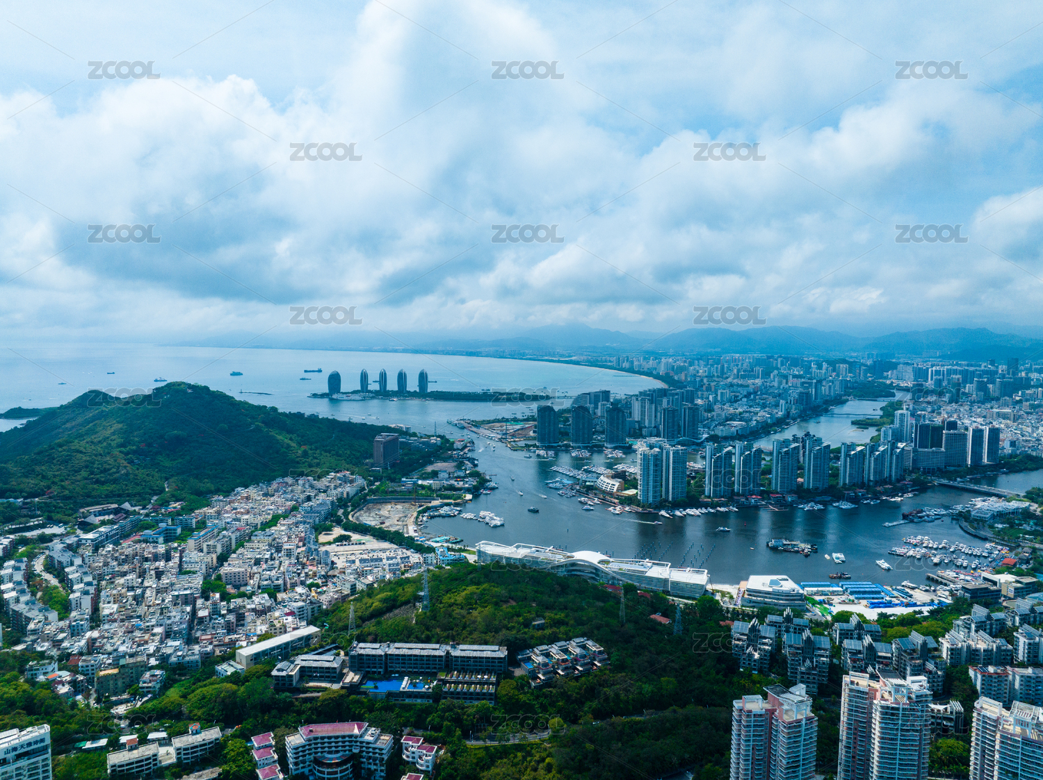 海南三亚临春岭深林公园山顶俯瞰城市建筑