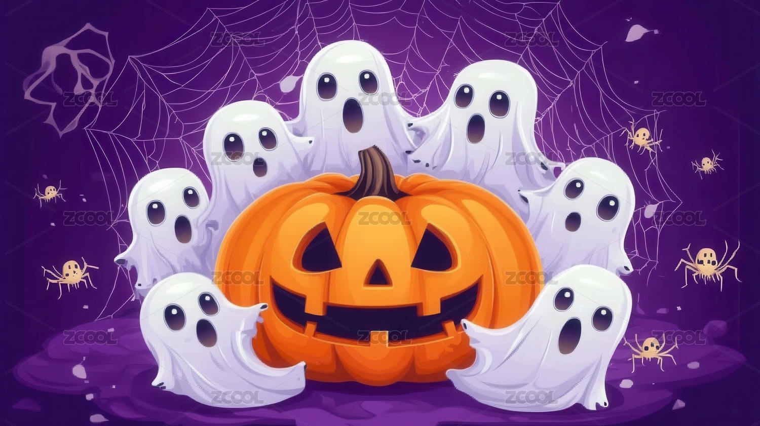 主视觉,商业,壁纸,南瓜,幽灵,万圣节,装饰,场景,南瓜灯,鬼怪