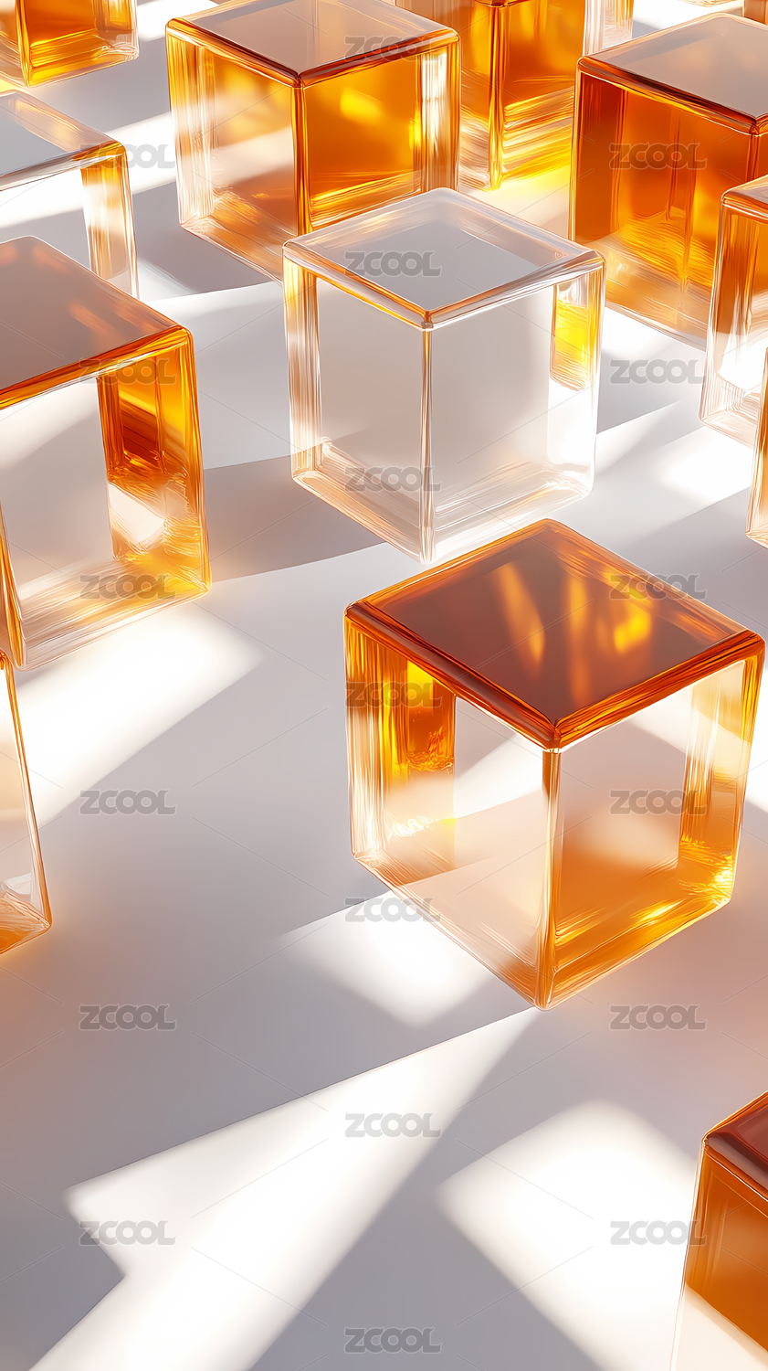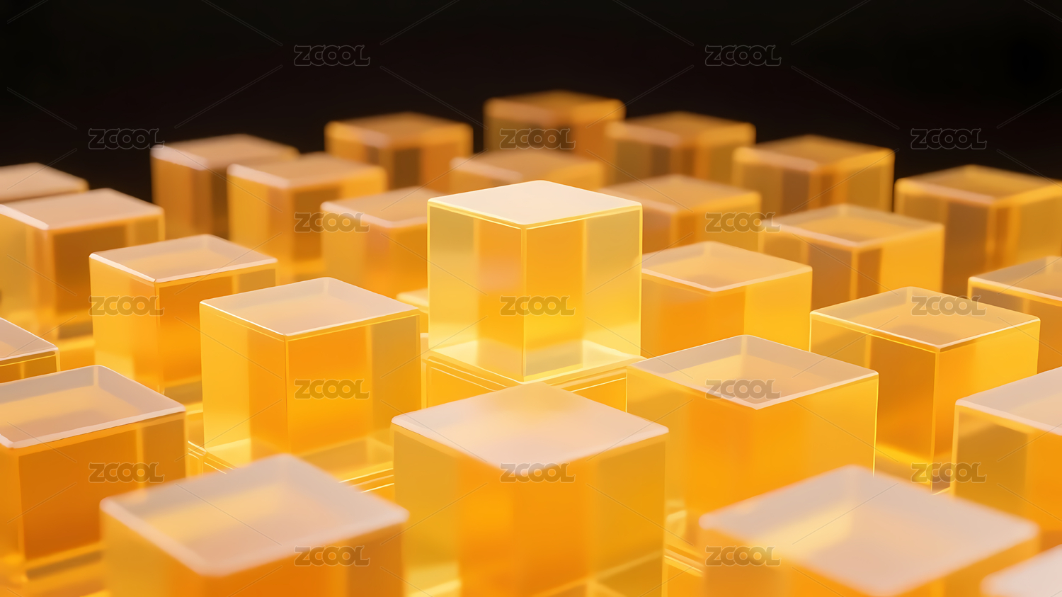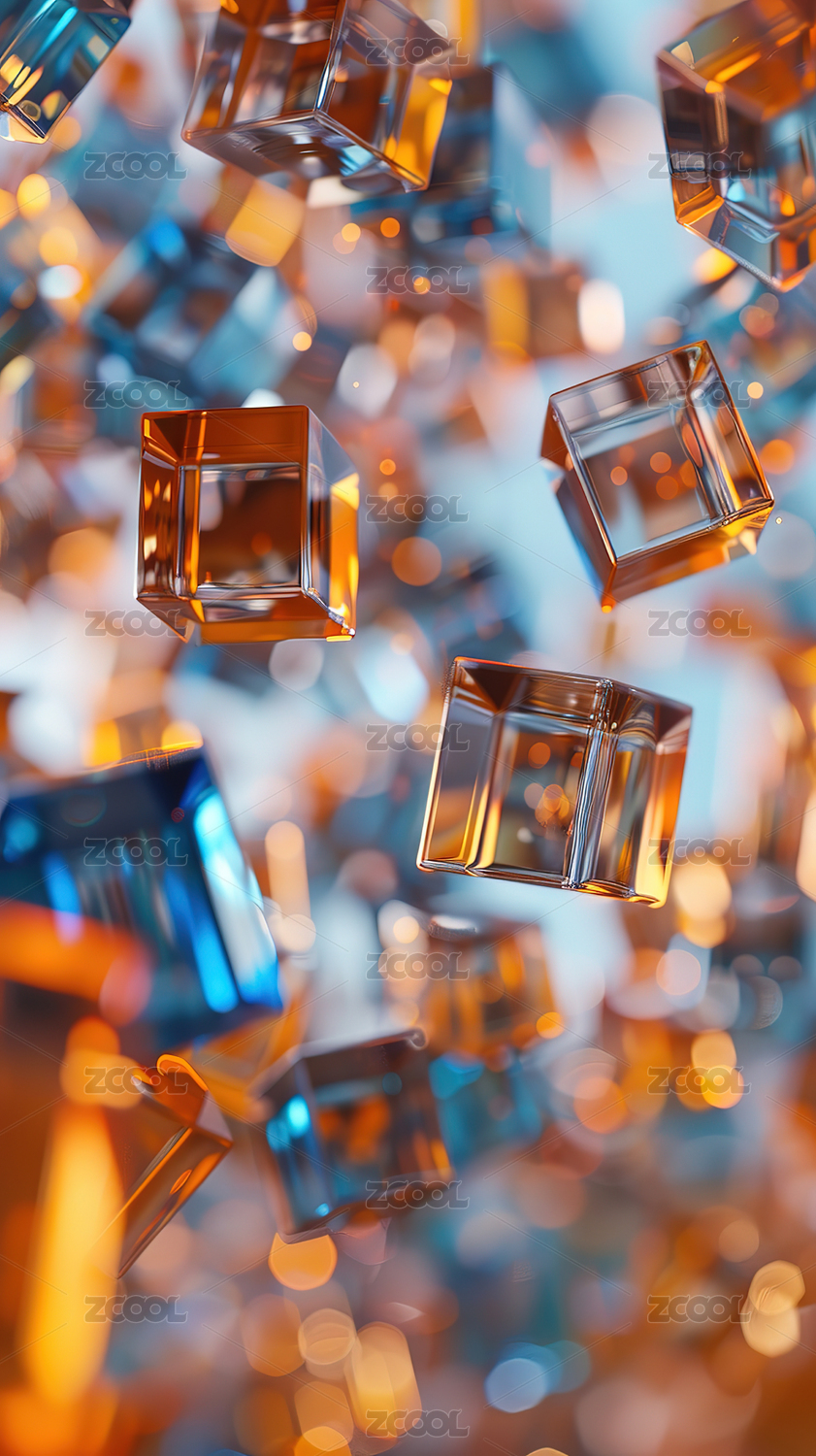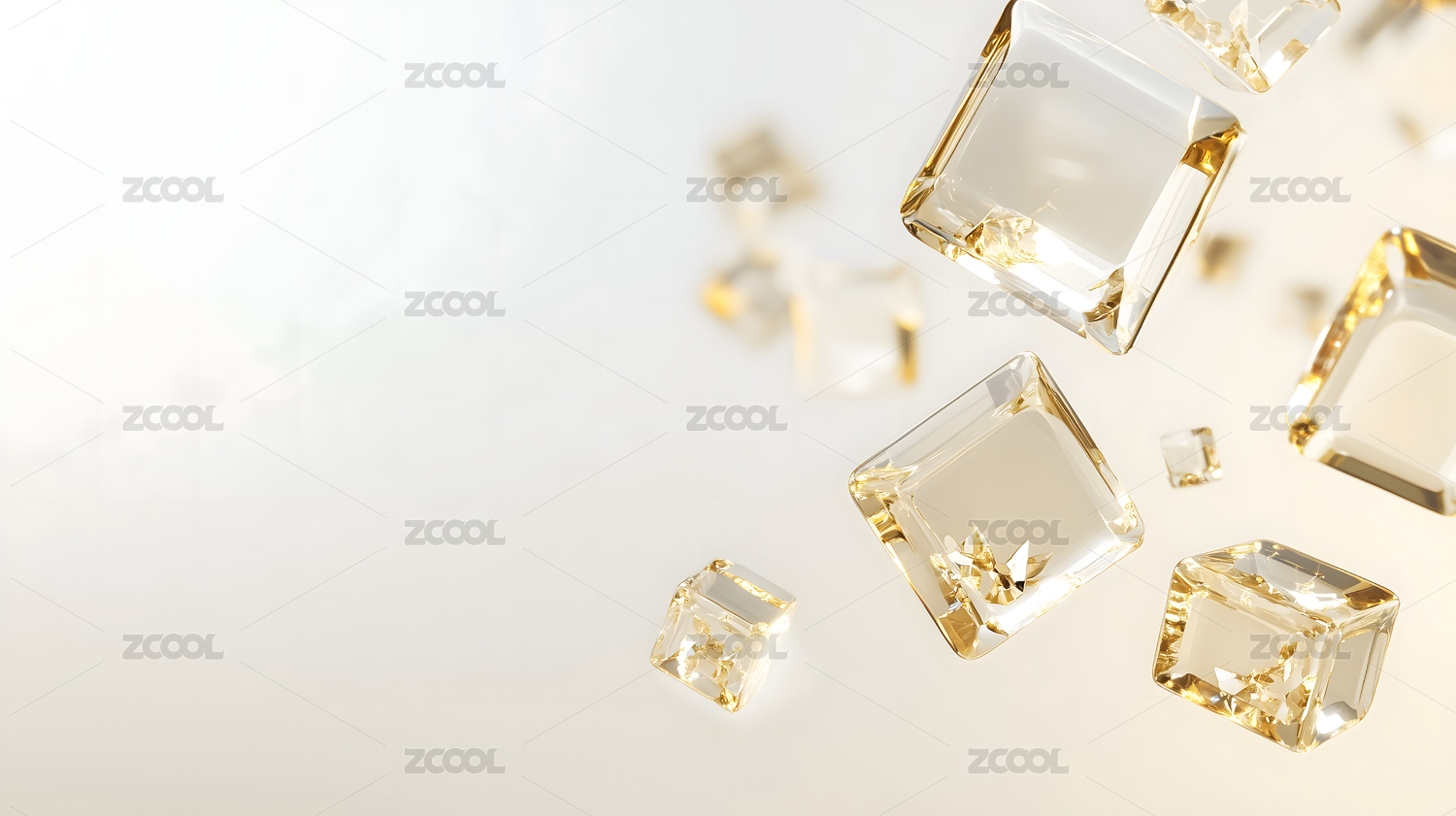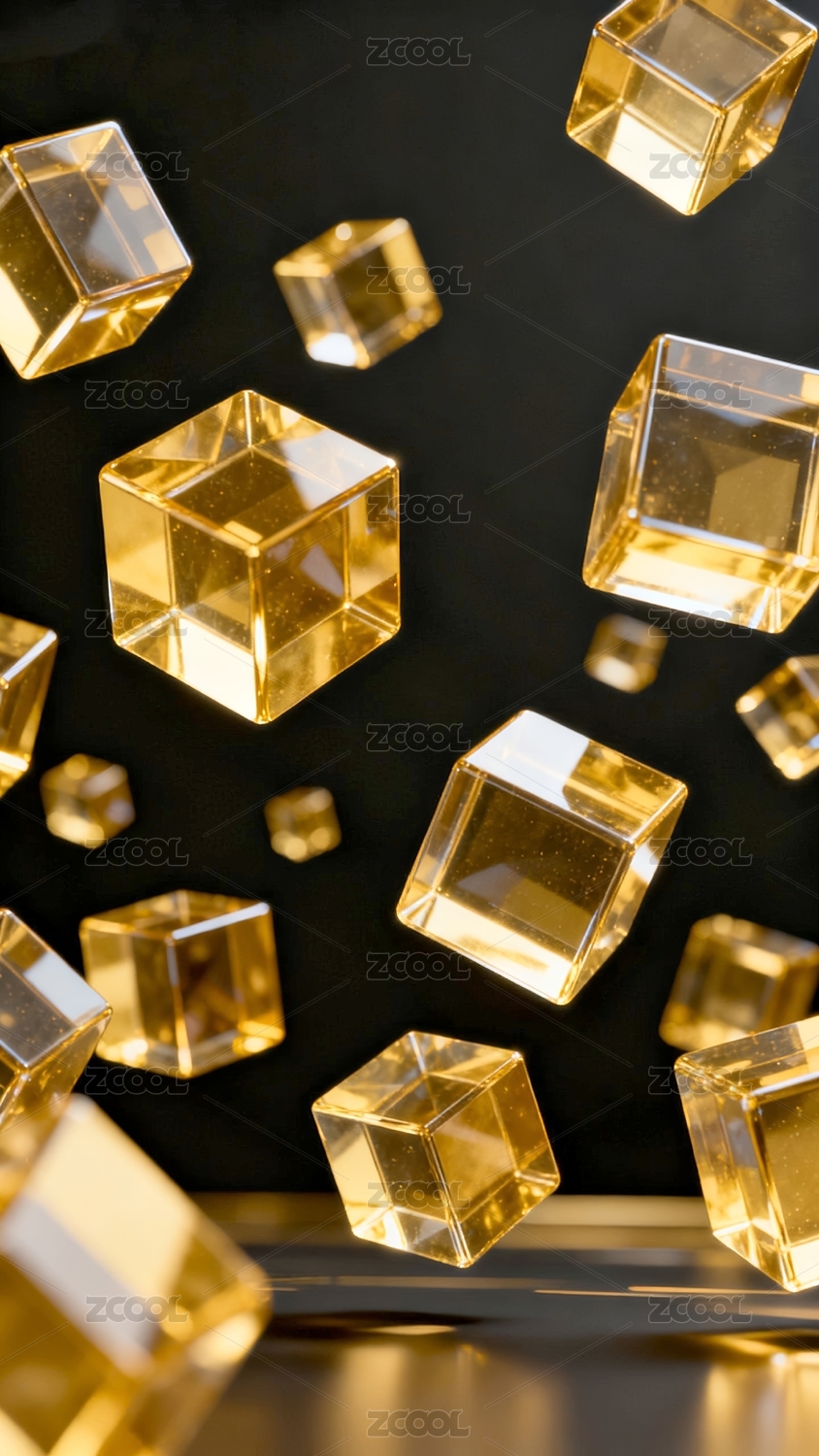 主视觉,商业,壁纸,金色,方块,悬浮,场景,透明,质感,黑色