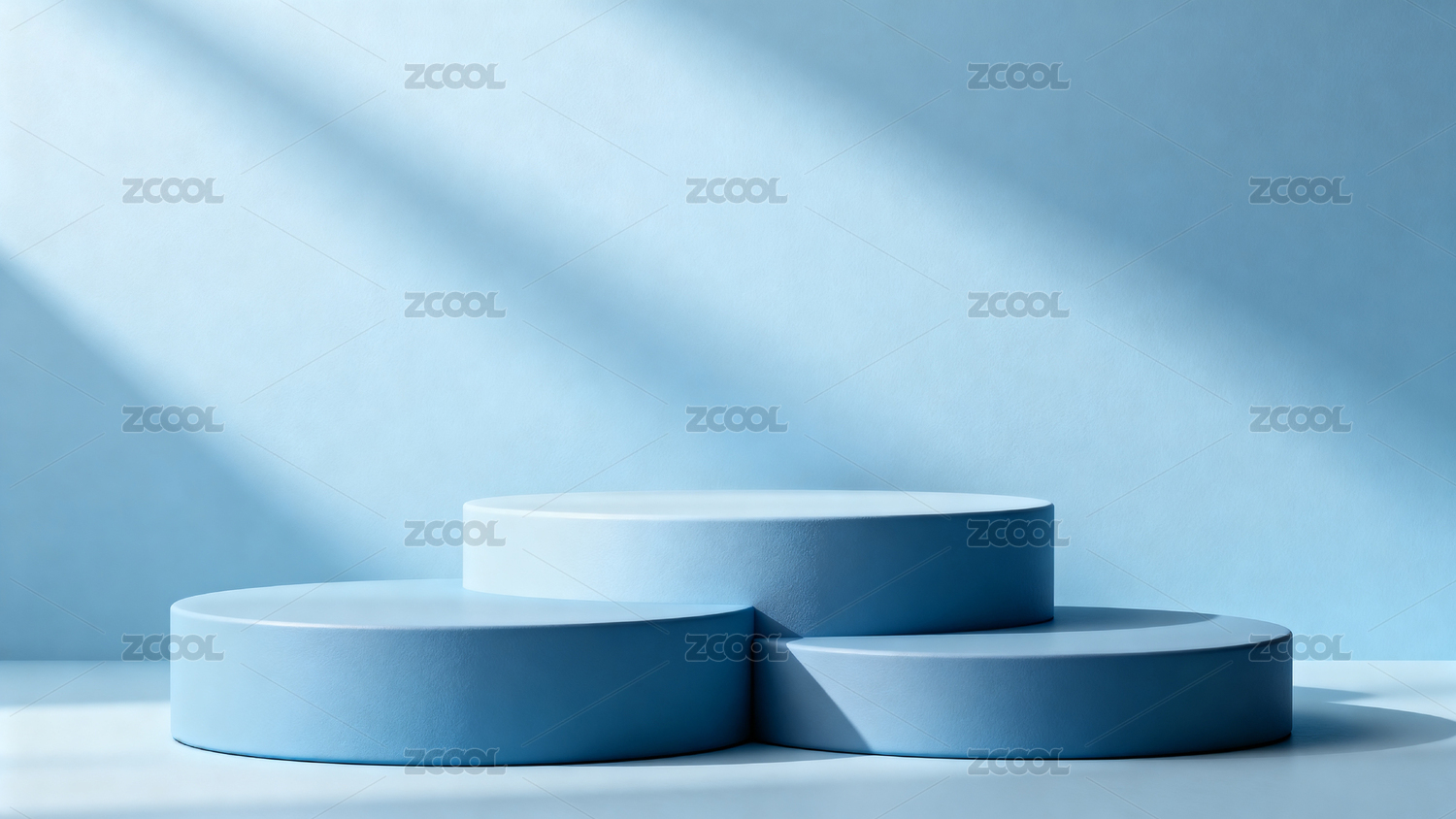 蓝色光影下的简约圆台展示
