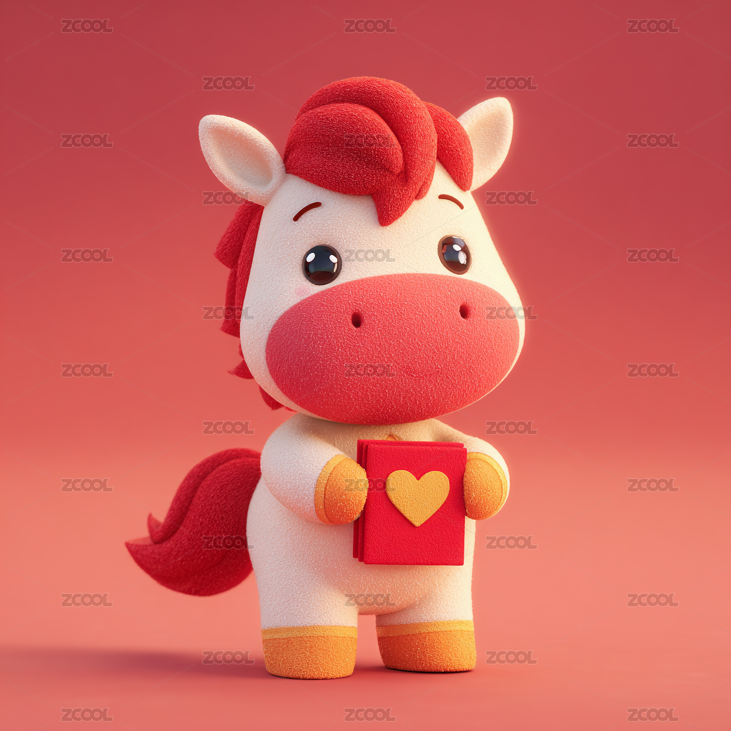 马,马宝宝,马年,可爱,立体,3D,卡通插画,喜庆,新年