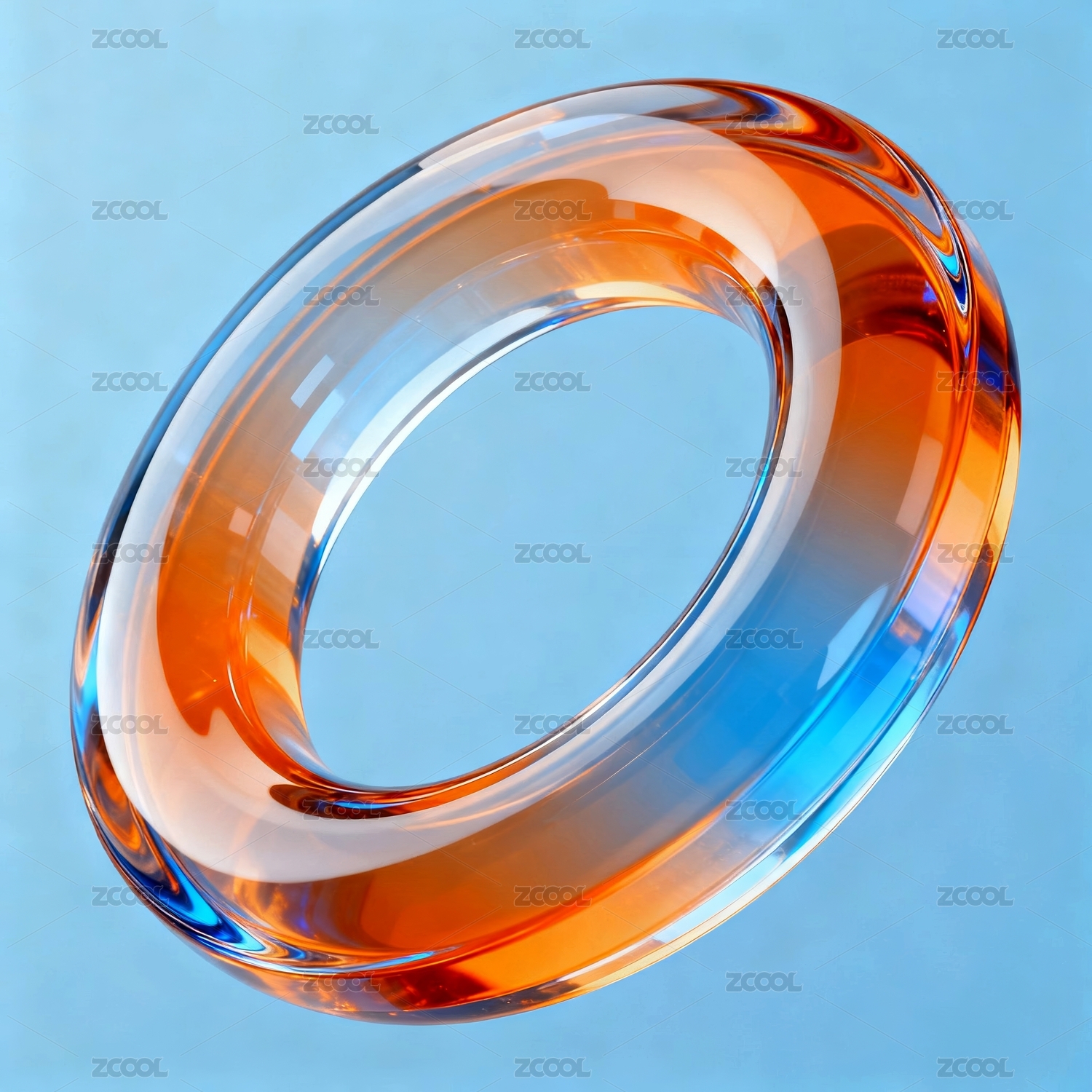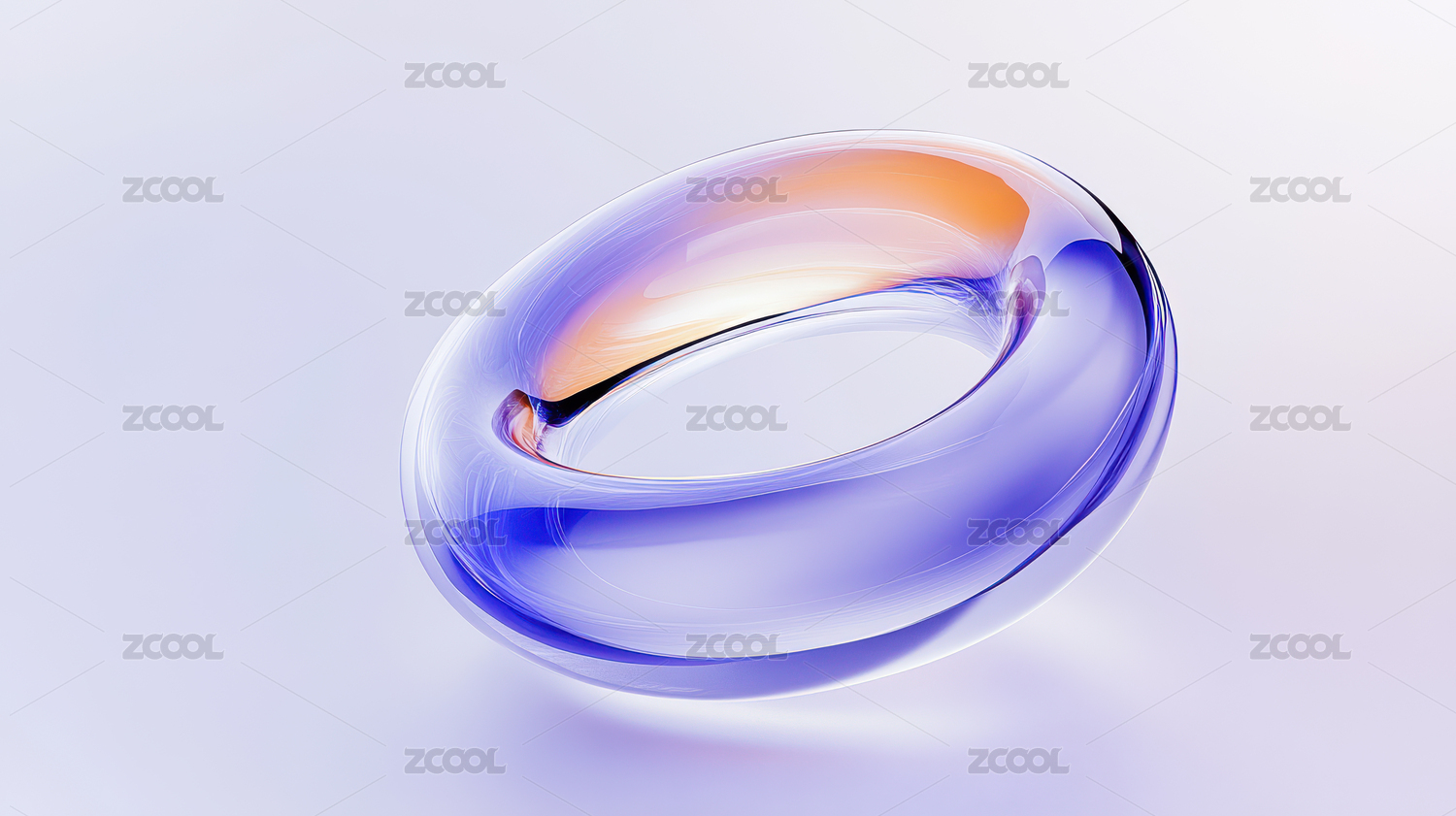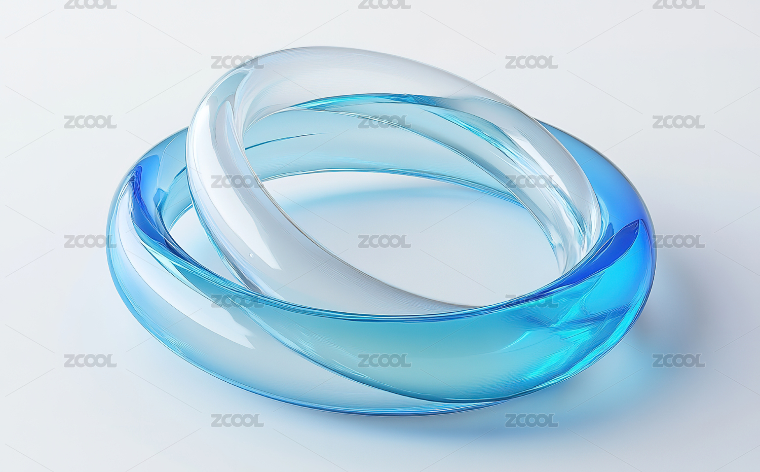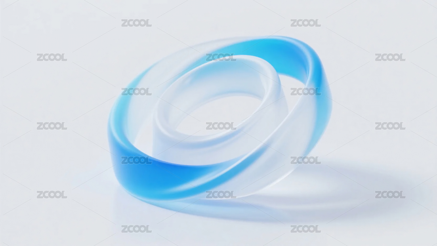 清新透明蓝底抽象浅蓝色圆环3D立体插画