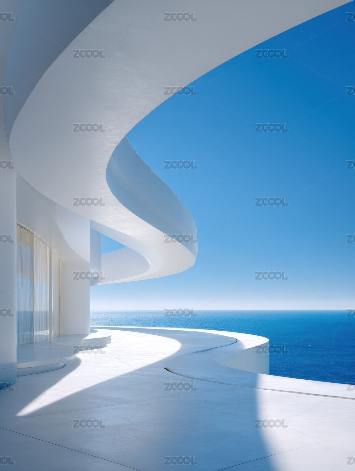 海边白色建筑曲线空间