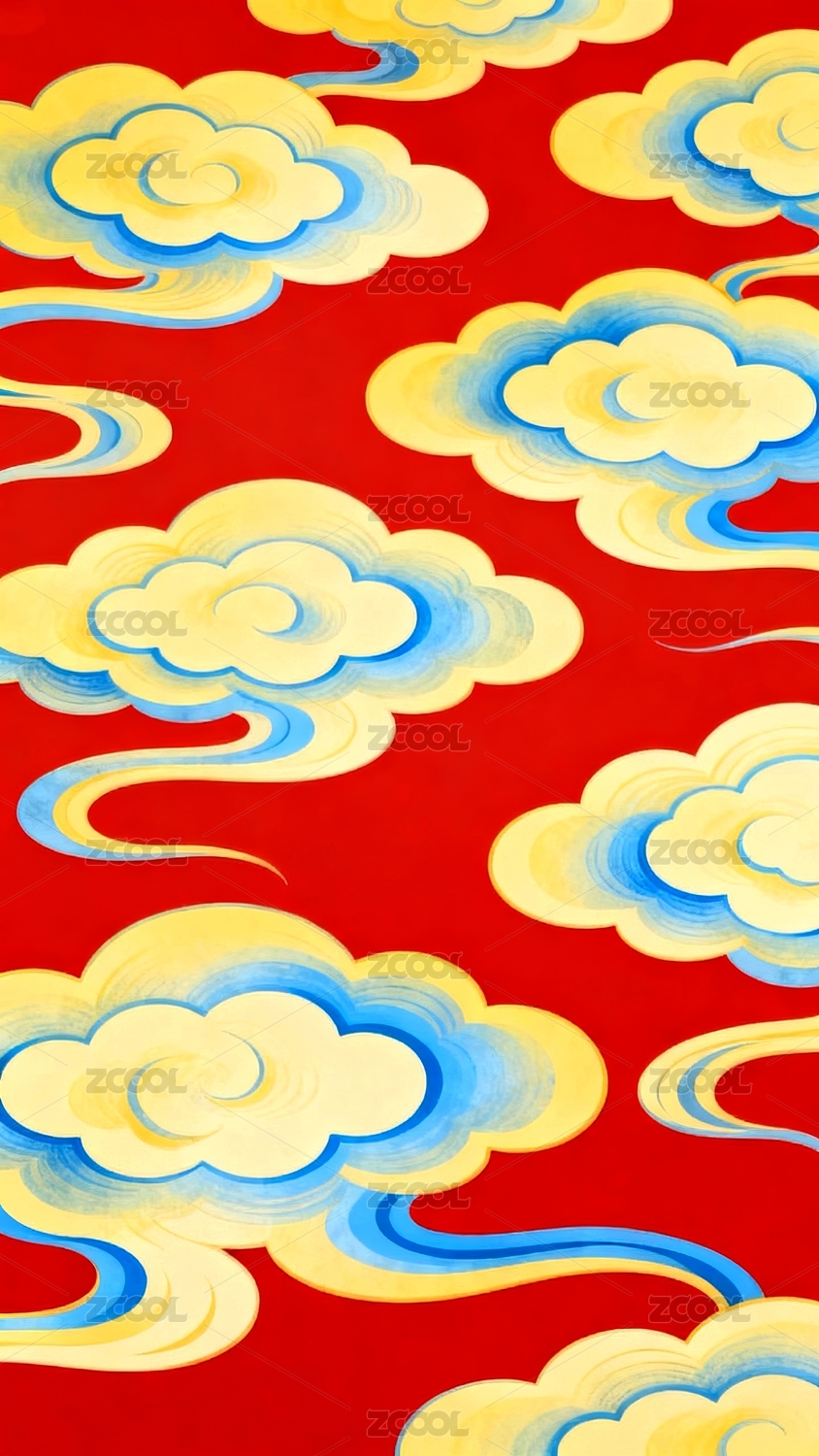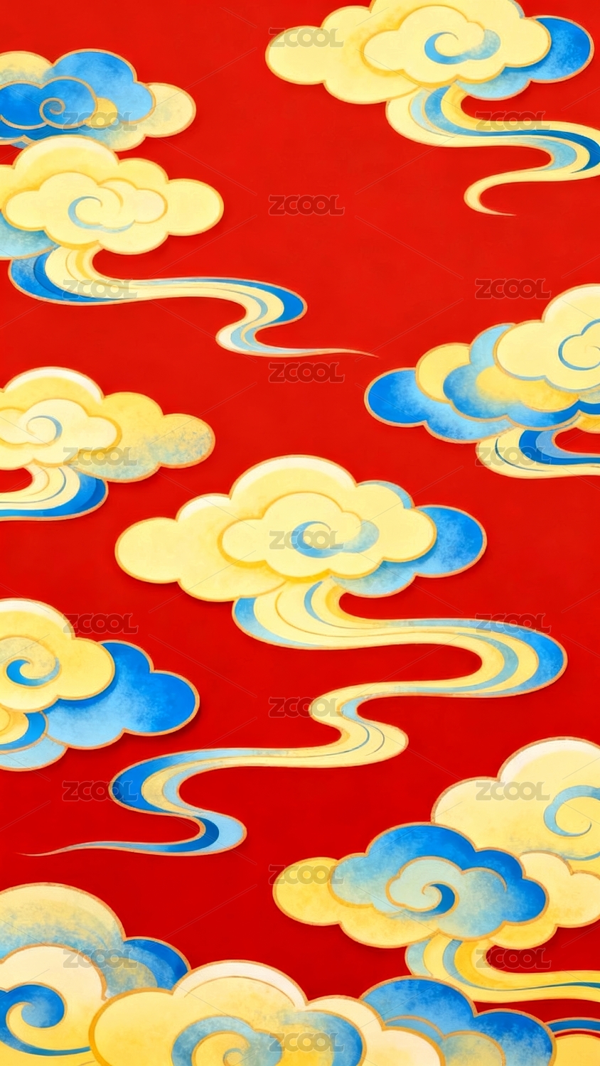 主视觉,商业,壁纸,场景,祥云,图案,装饰,红色,背景,传统