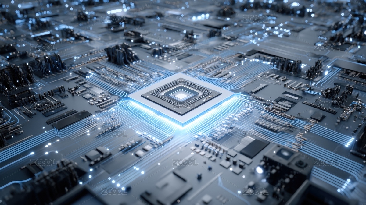 蓝色,电路,发光,金属,科技,未来,结构,设计,现代,芯片