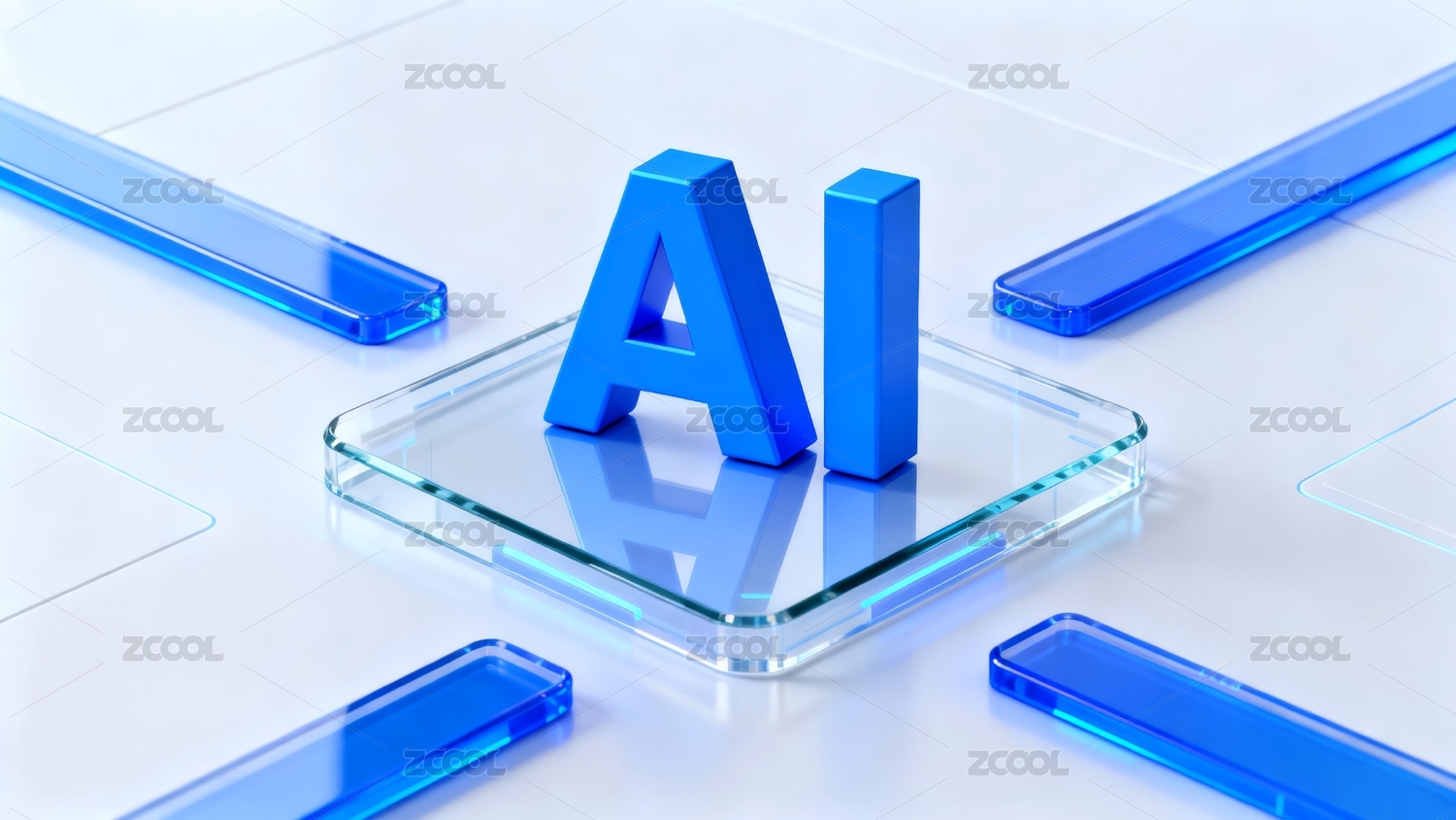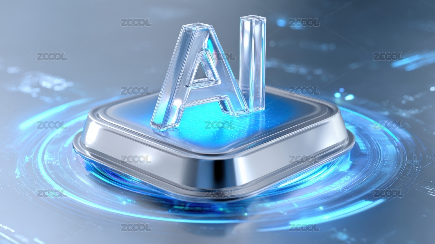 白色发光平台上的AI立体展示