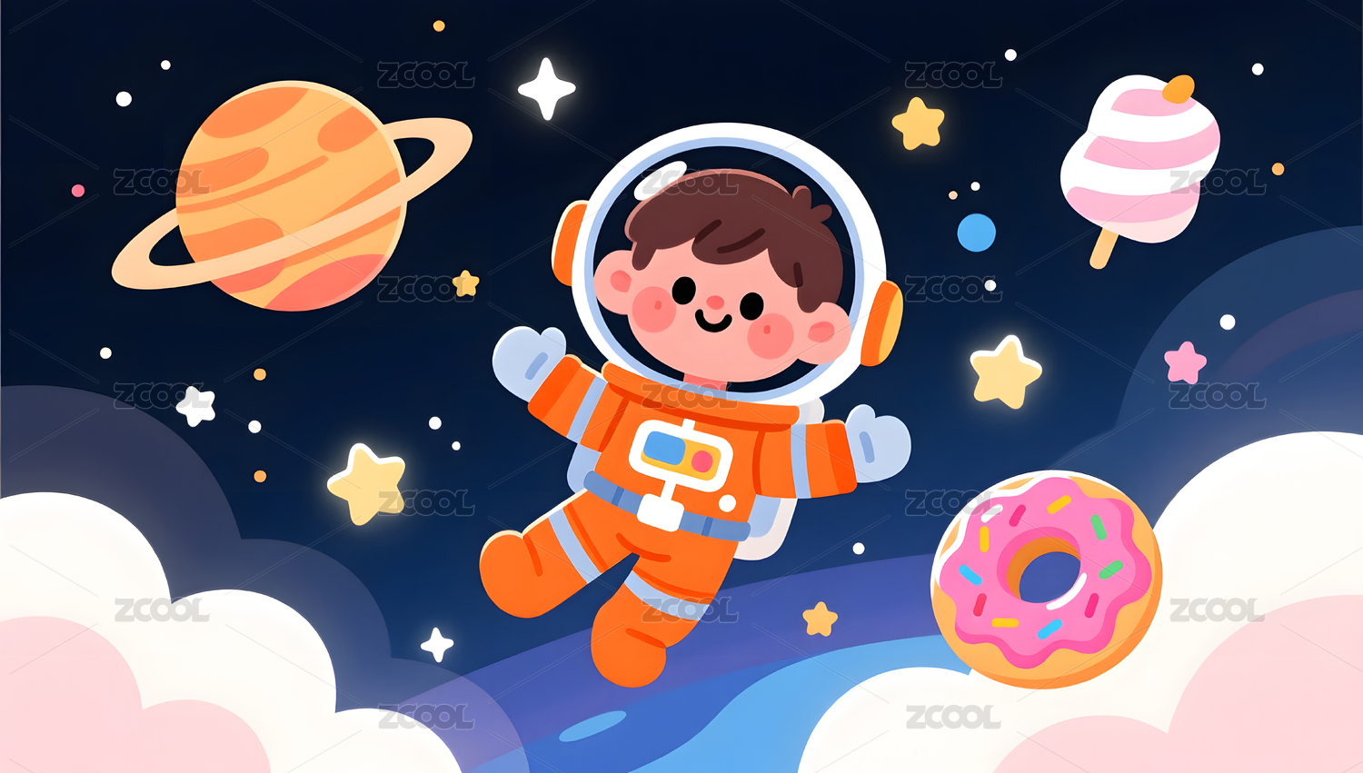 卡通宇航员太空漫游