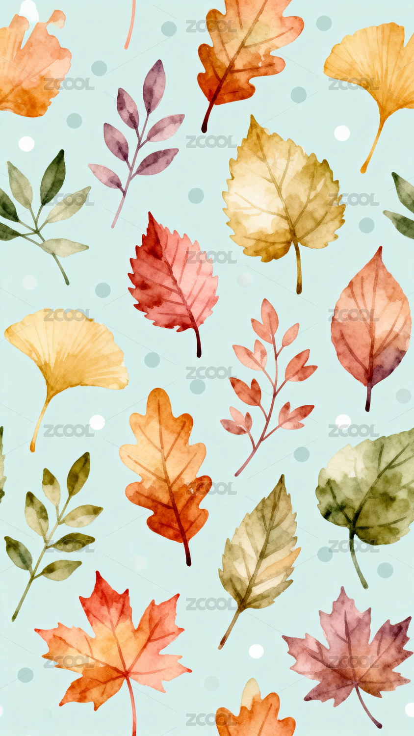 数码复古水彩秋天叶子浆果装饰抽象海报背景