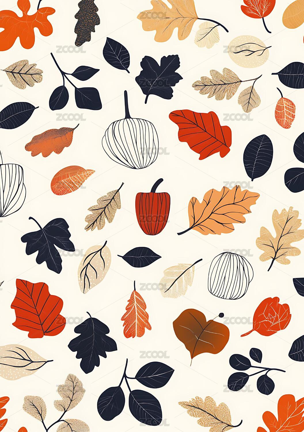 秋天树叶落叶插画图案背景