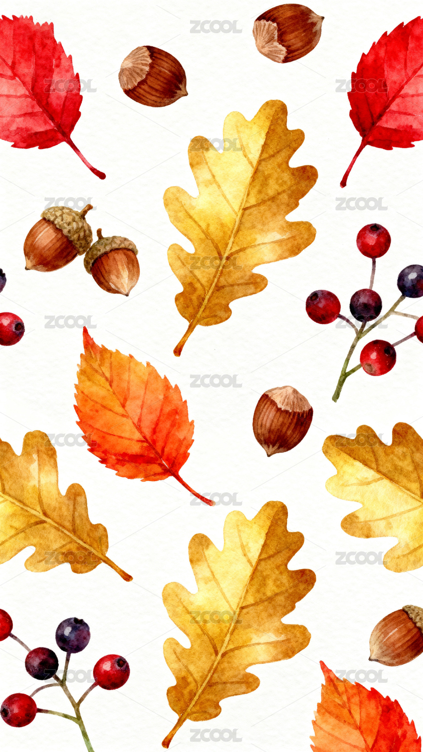多彩秋叶水彩画图案