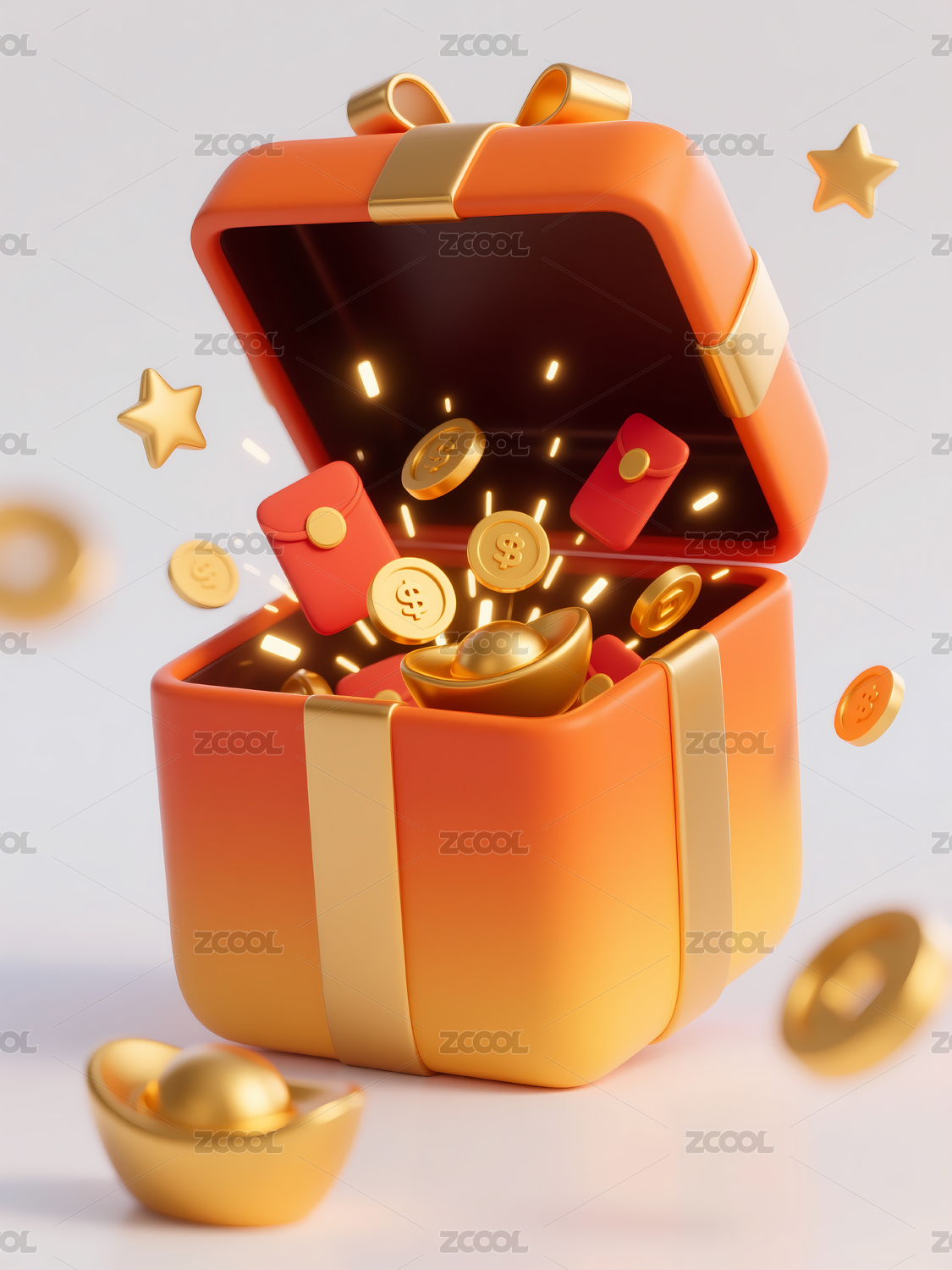 金色礼盒中的金币与红包