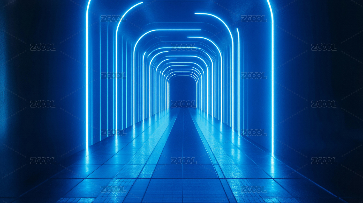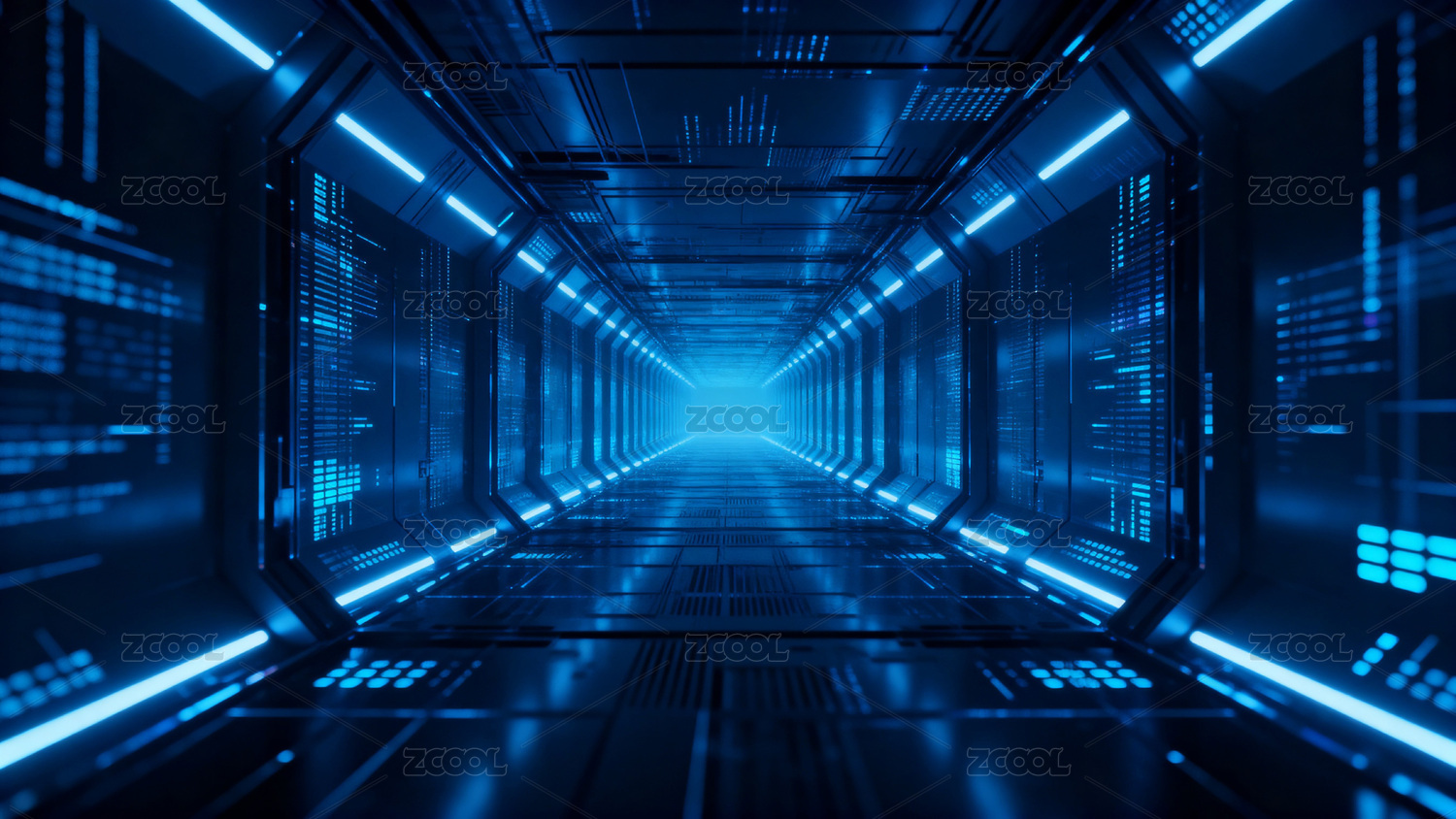 3D渲染科幻延伸蓝色未来科技感空间场景