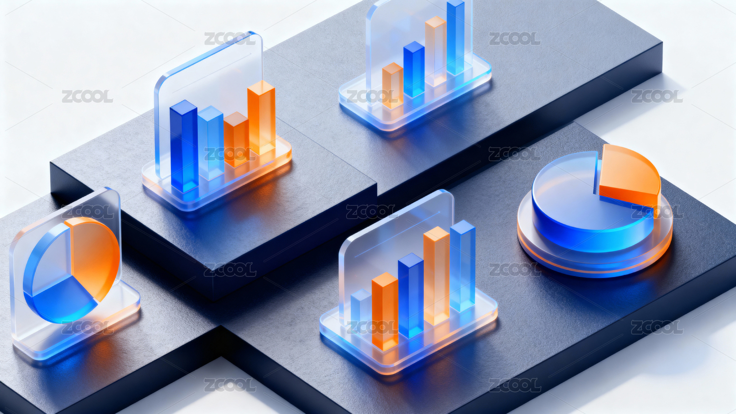 蓝色立方体数据图表展示