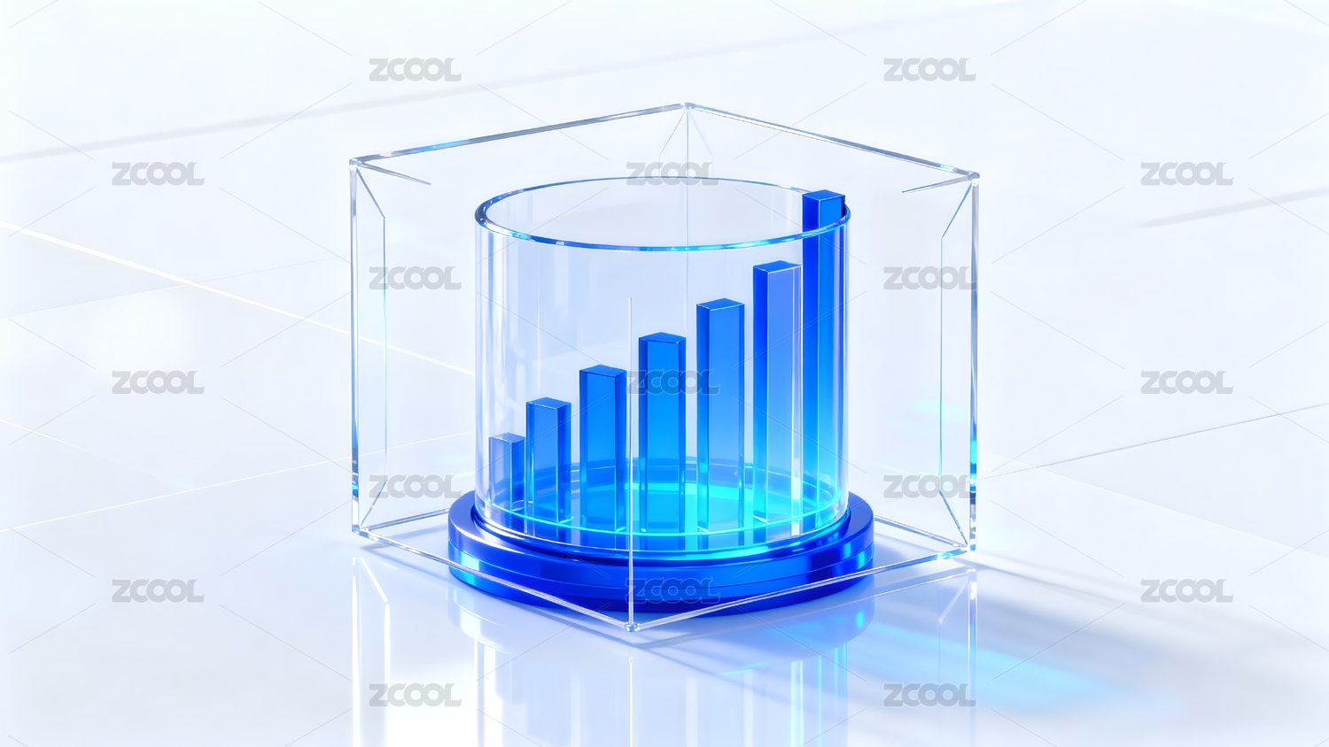 透明立方体内的蓝色柱状图