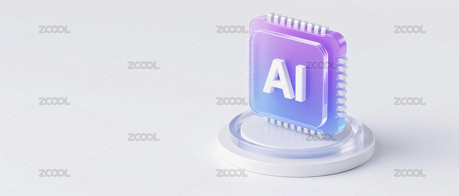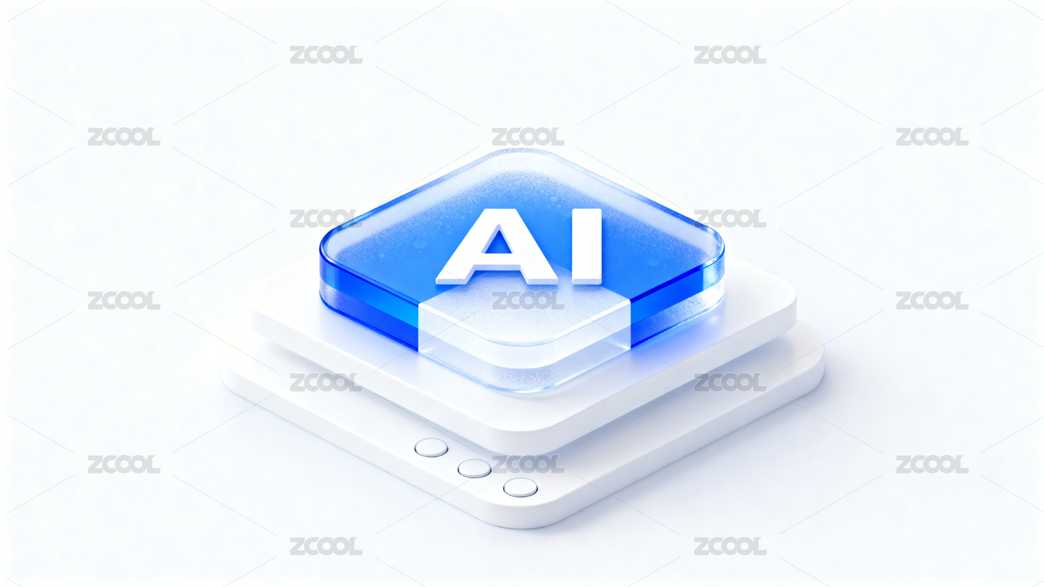 蓝色AI标志悬浮于透明基座