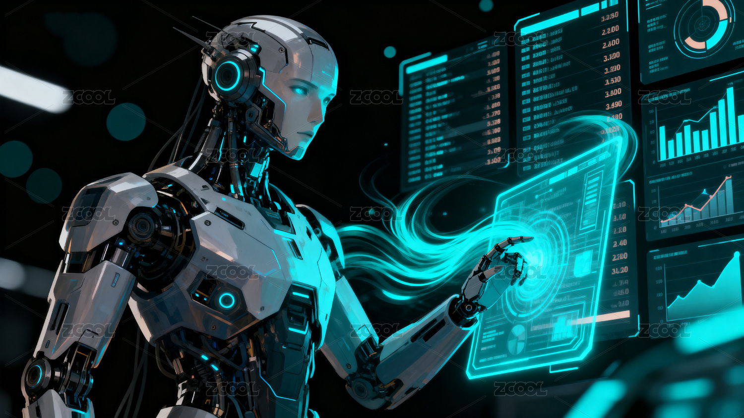 机器人,科技,未来,操作,屏幕,智能,虚拟,数据,图表,手臂
