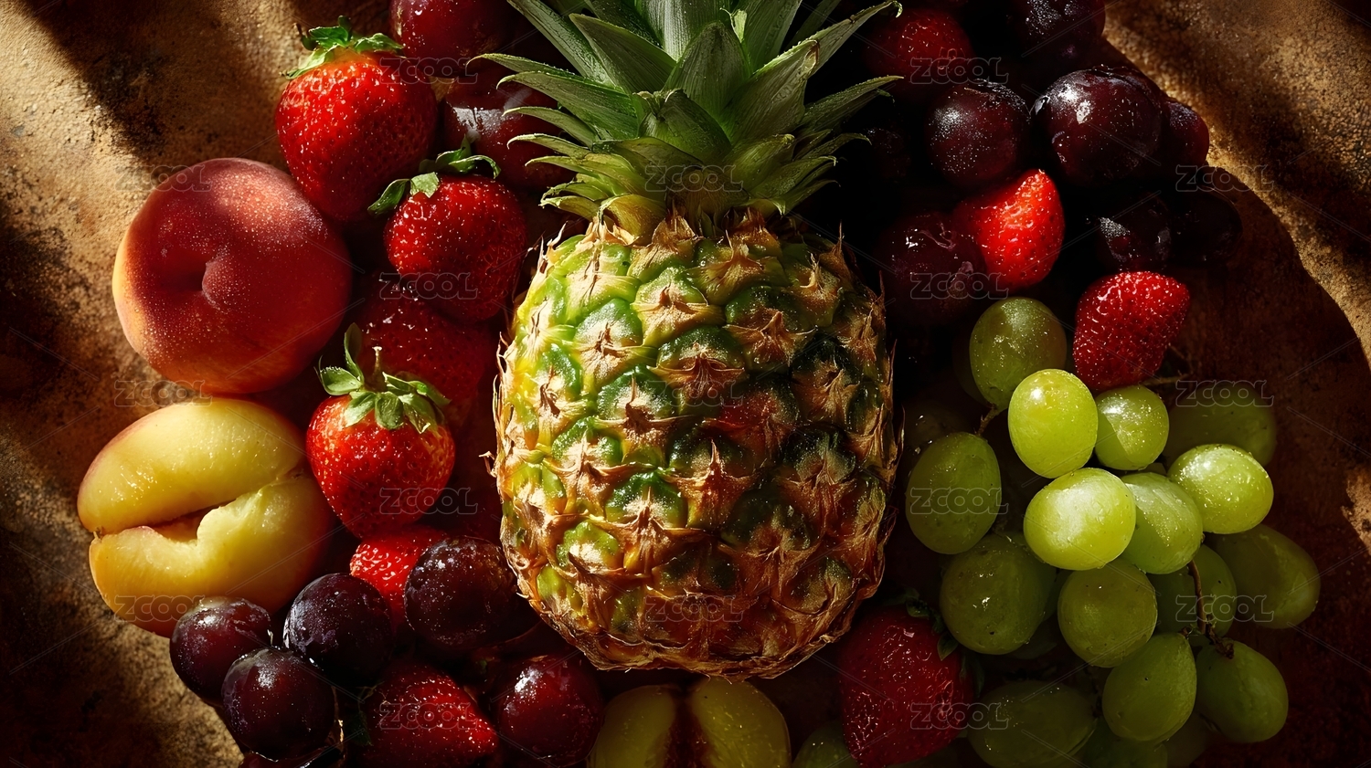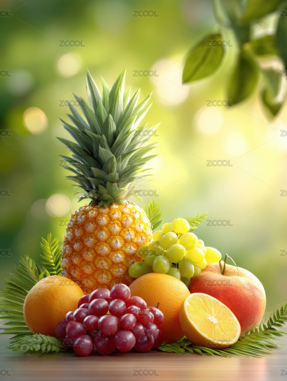 黄色,背景,叶子,绿色,阳光,光斑,水果,菠萝,橙子,葡萄