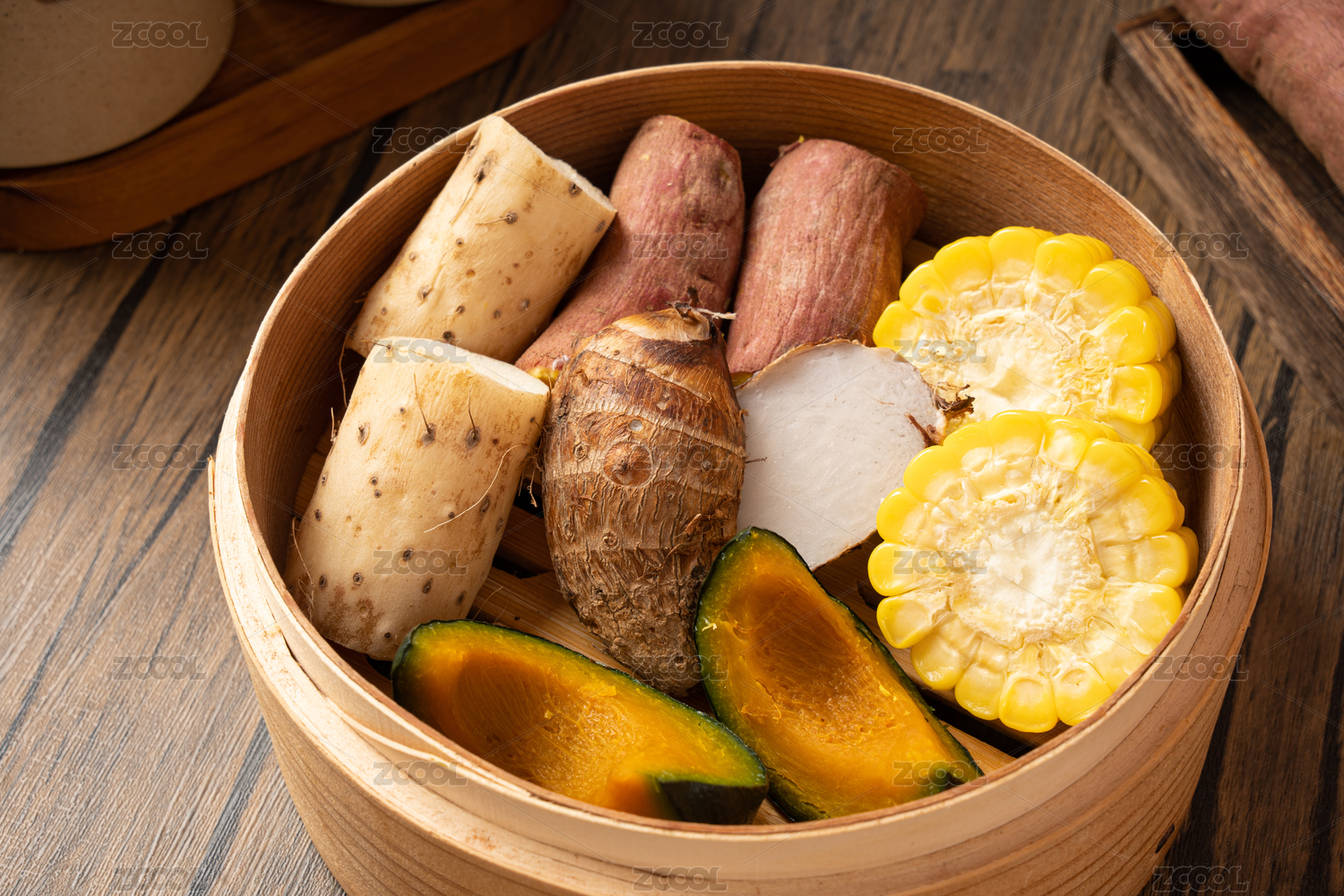 五谷丰登,蒸制粗粮杂粮,田园大丰收,传统菜肴,健康养生,蒸制,玉米,南瓜,红薯,健康