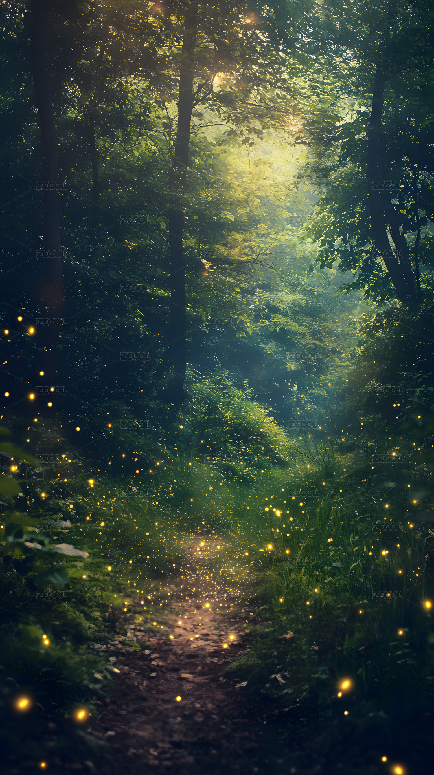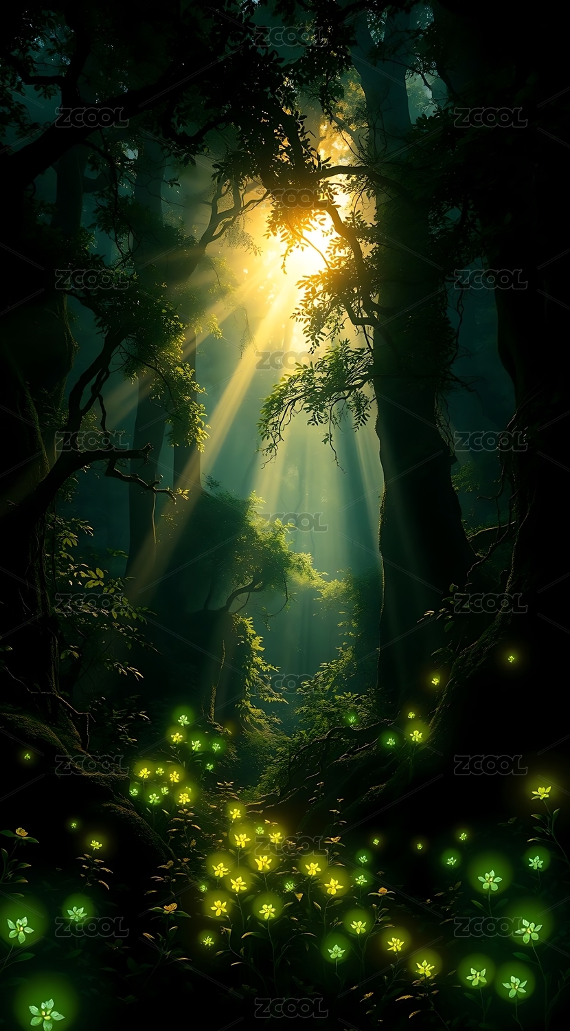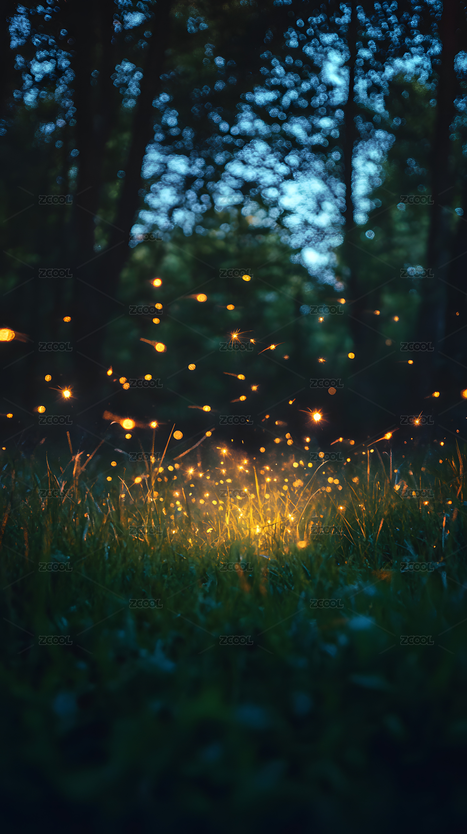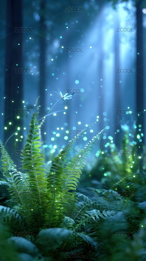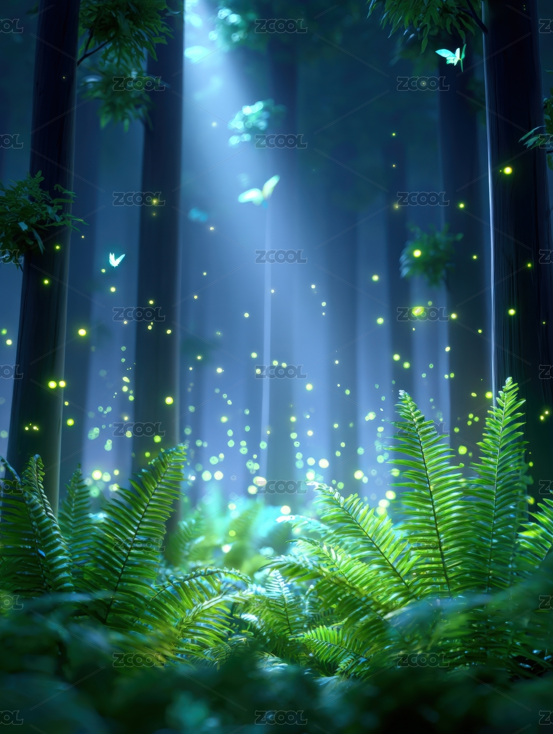 光斑,自然,树木,森林,萤火虫,夜晚,雾气,植物,绿色,蕨类