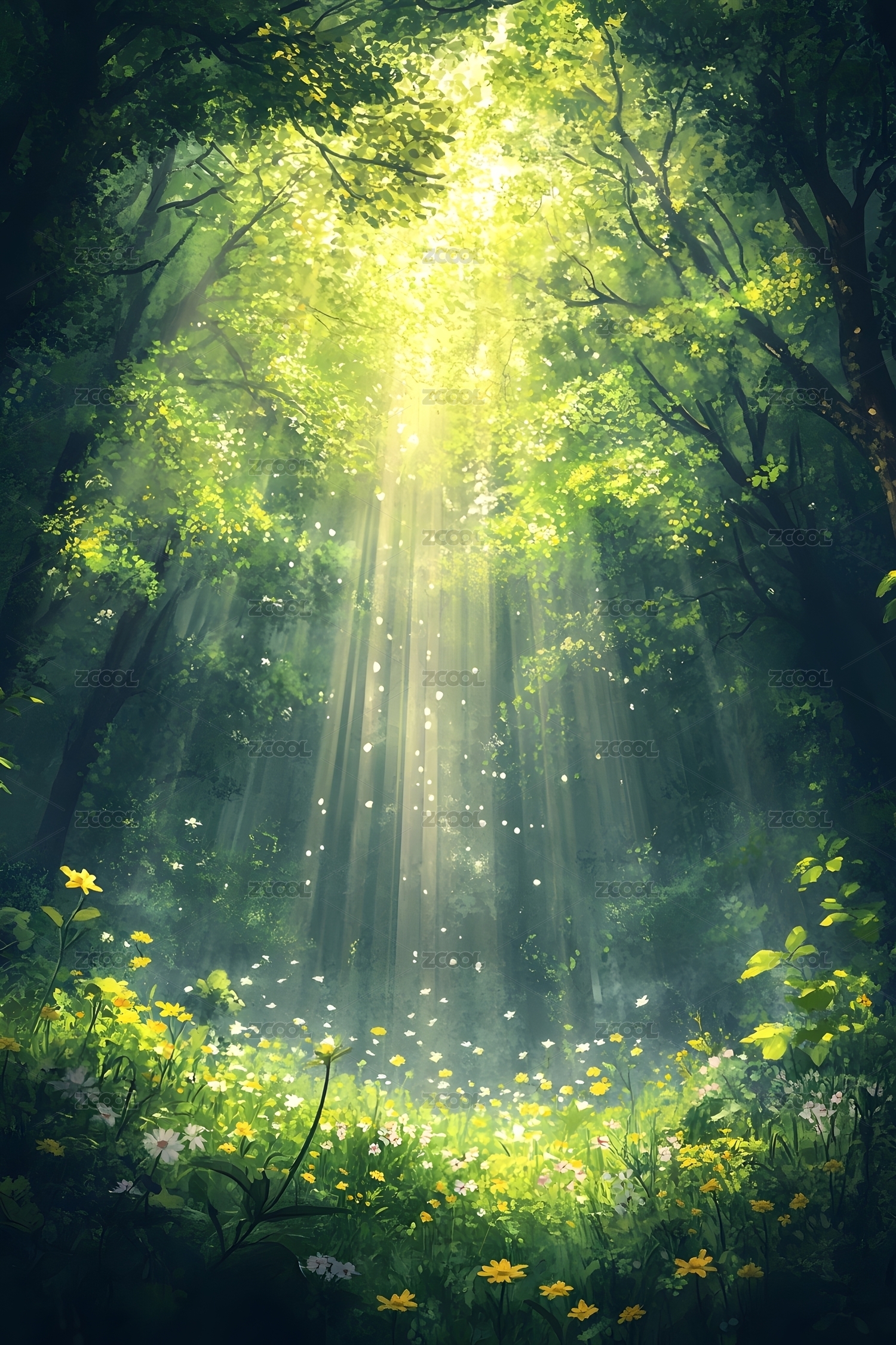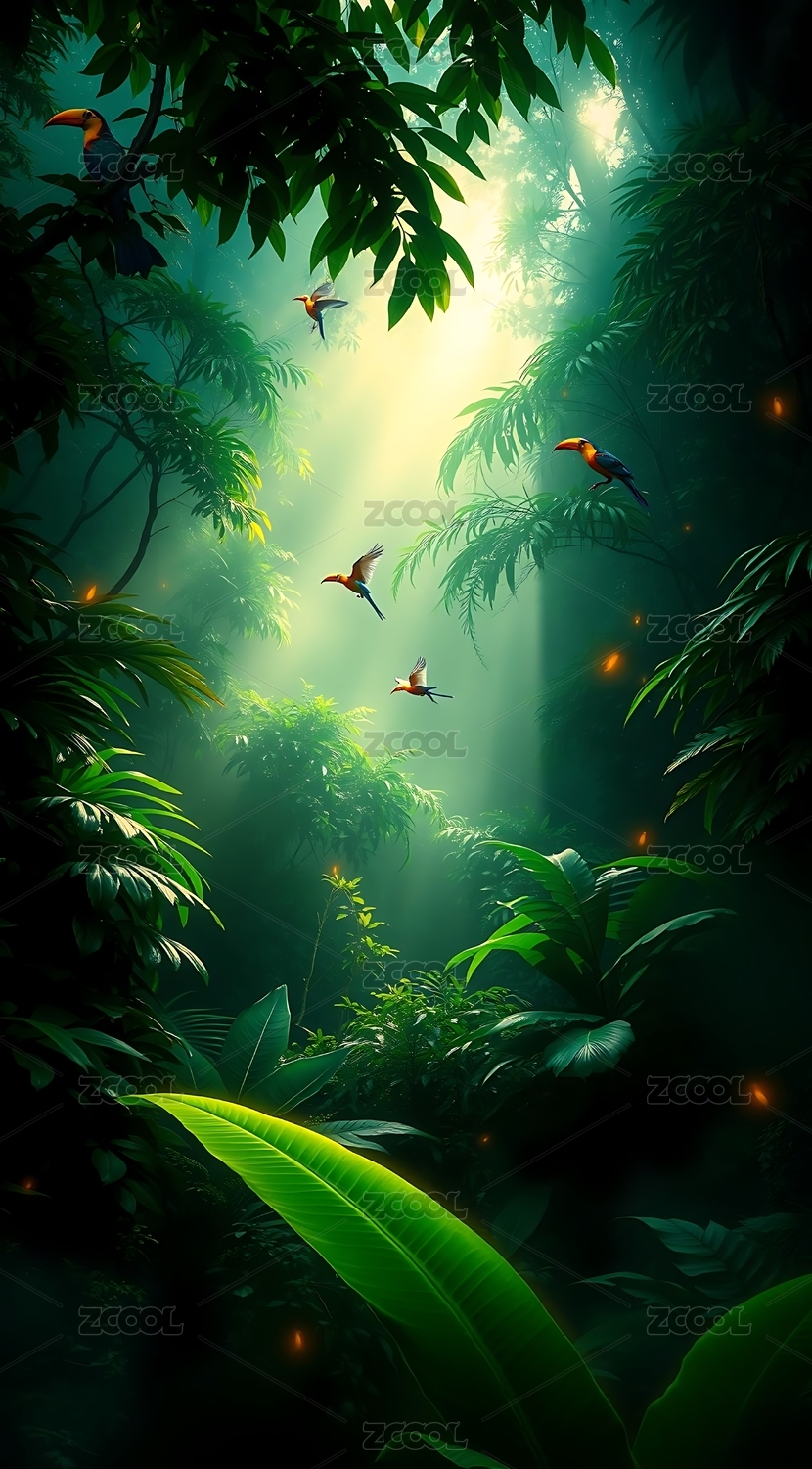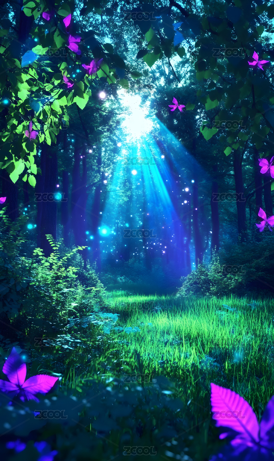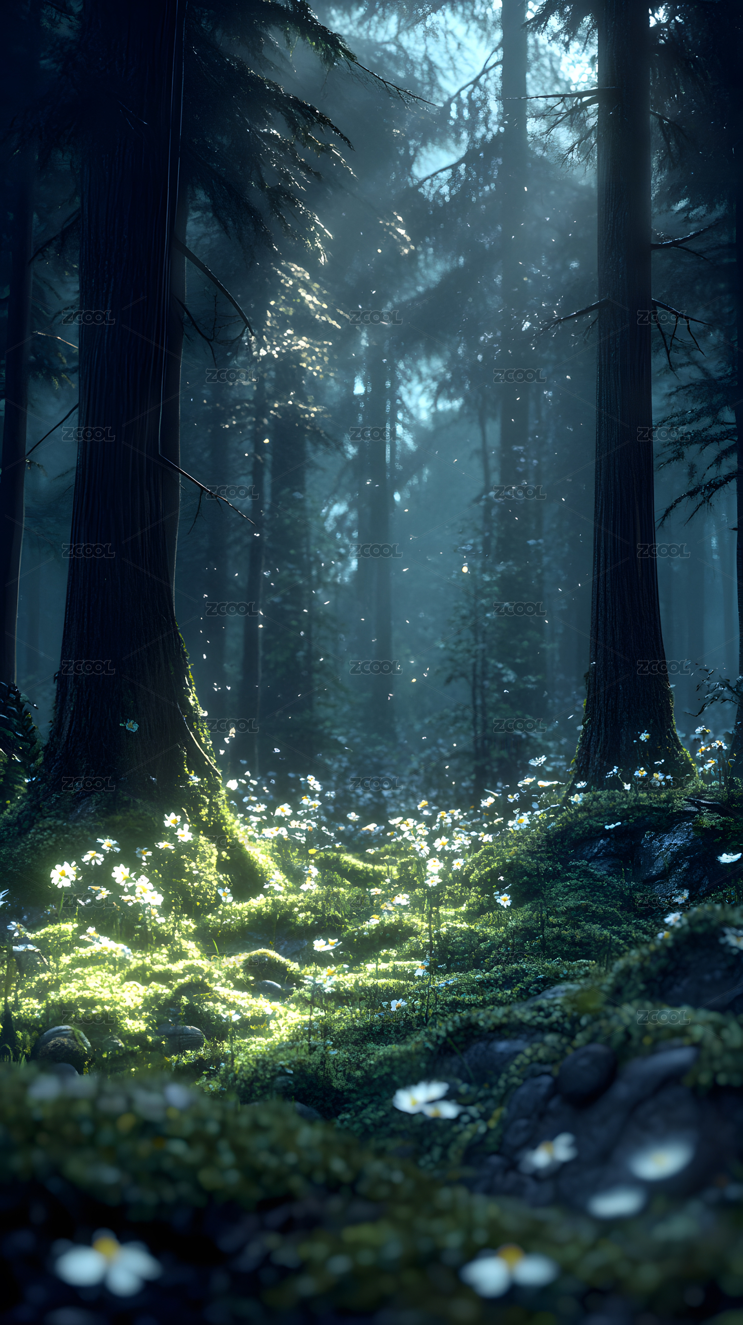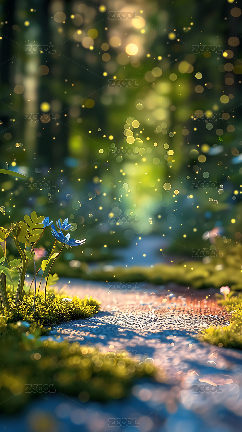 光斑,自然,树木,森林,萤火虫,夜晚,雾气,植物,绿色,蕨类