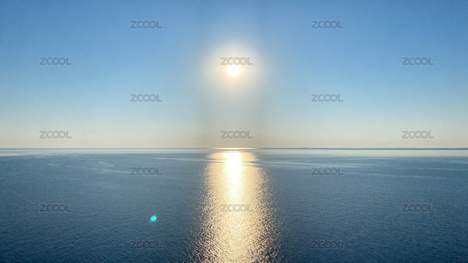 晴空万里的蓝色海洋,天空和海洋相互交接