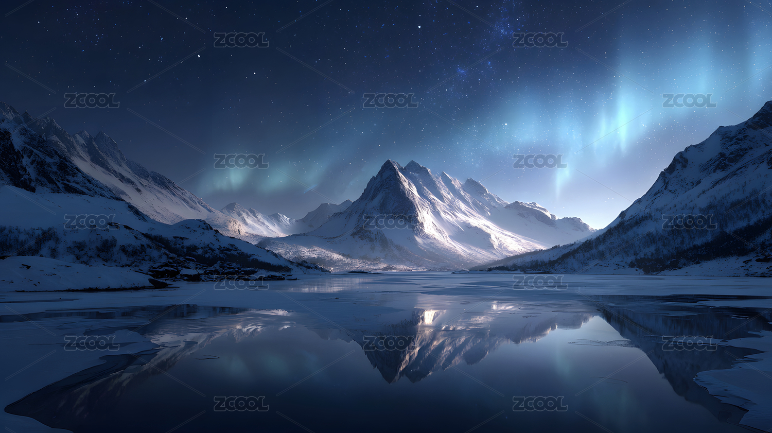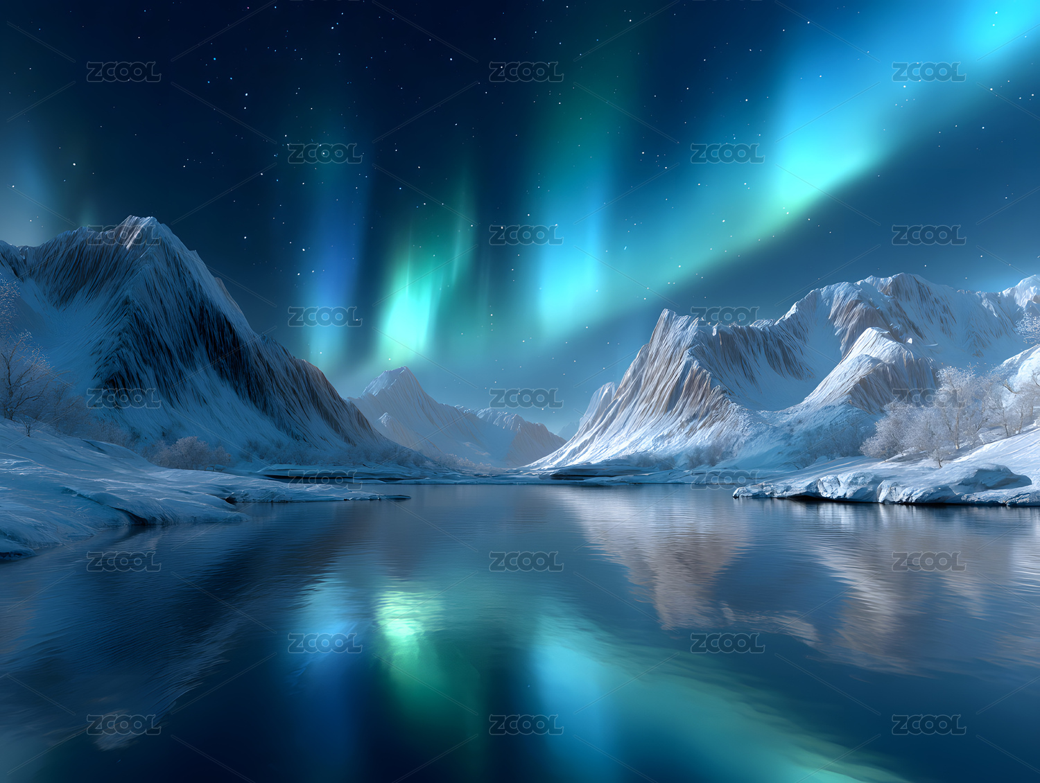 发光,夜晚,极光,极地,冬季,北极光,冰雪,天空,倒影,湖泊