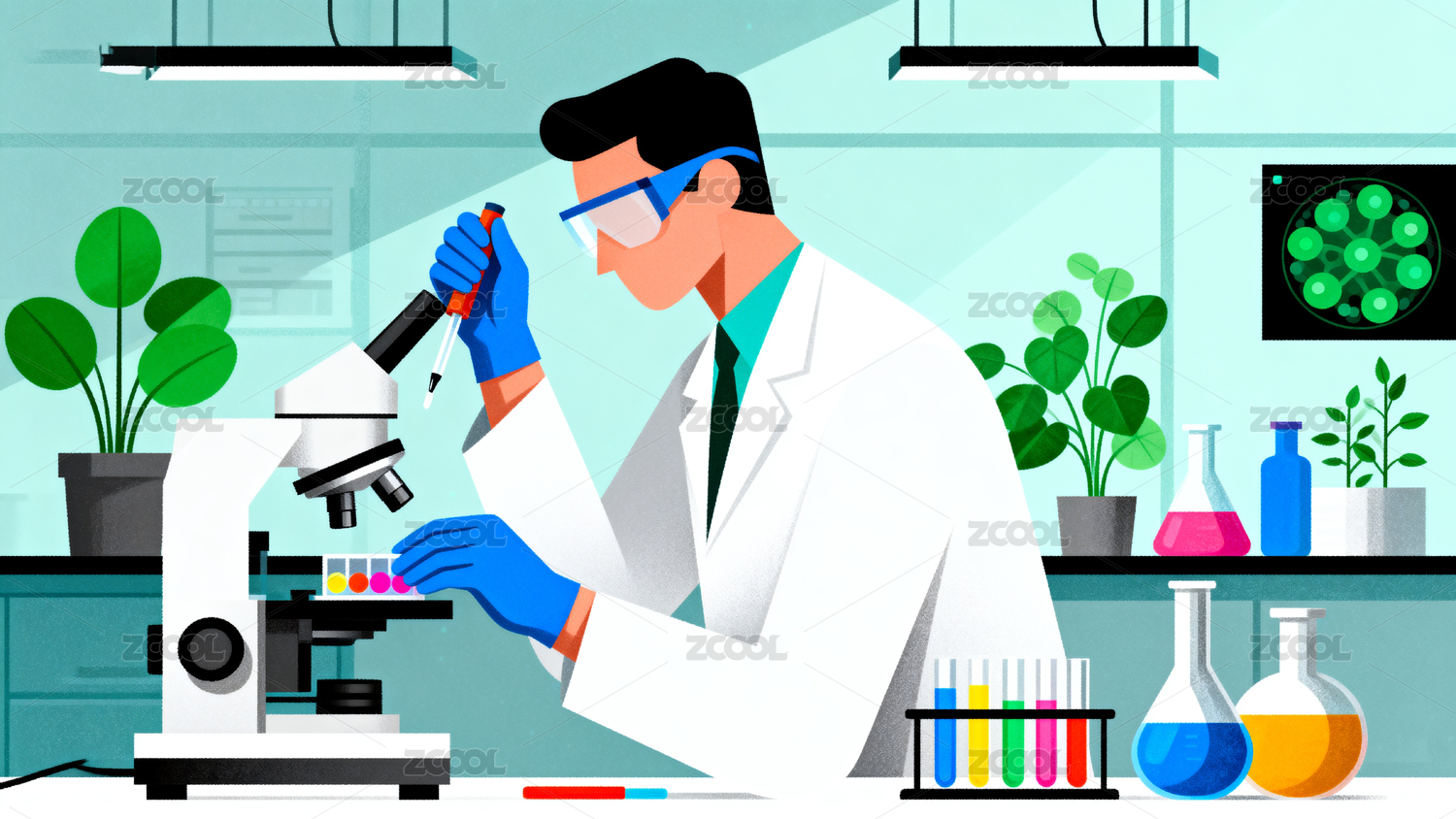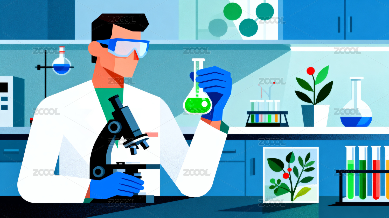 分析,安全,科学家,实验,试管,显微镜,研究,蔬菜,白大褂,护目镜