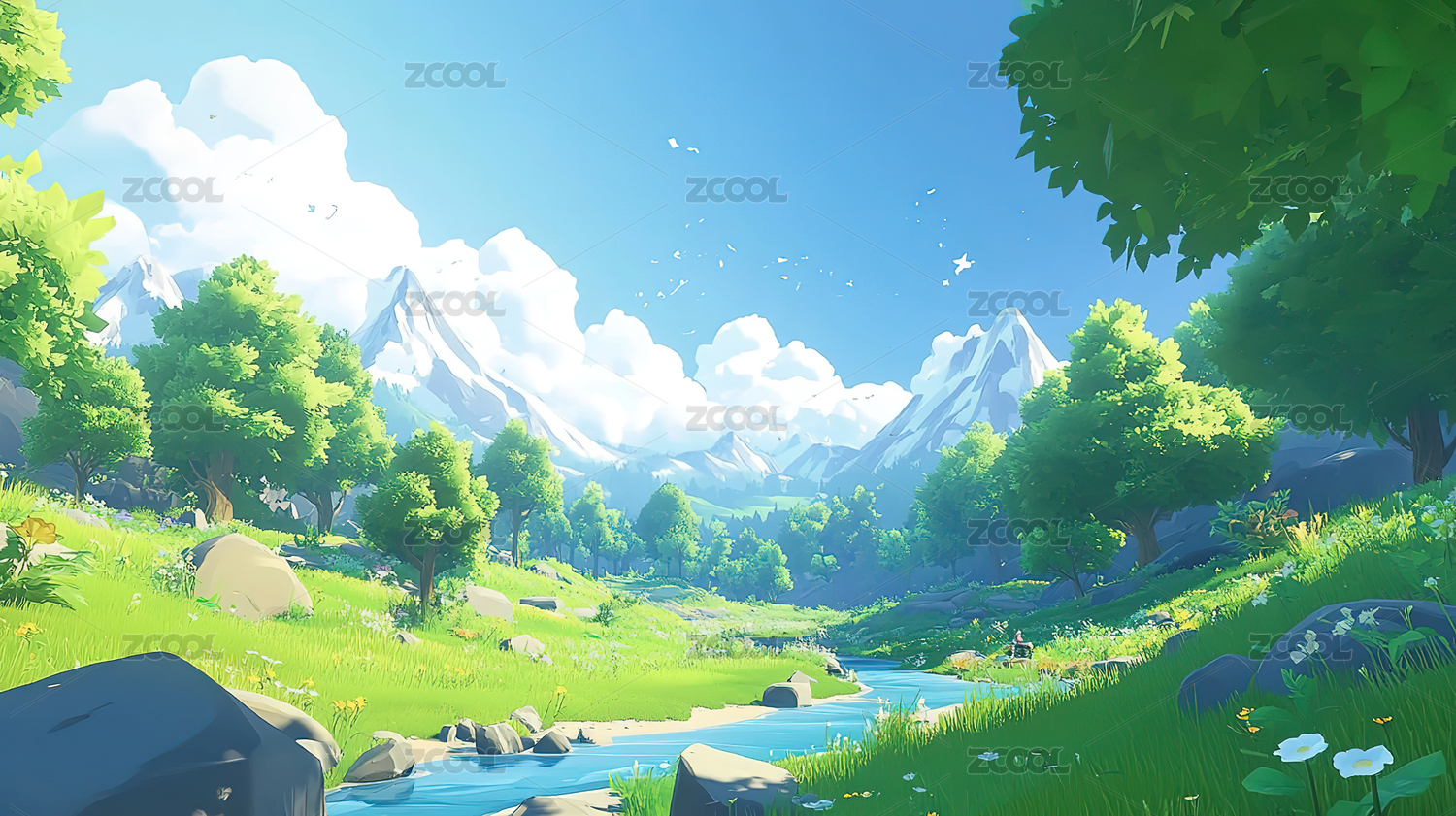 田园风光中的奶牛与小溪