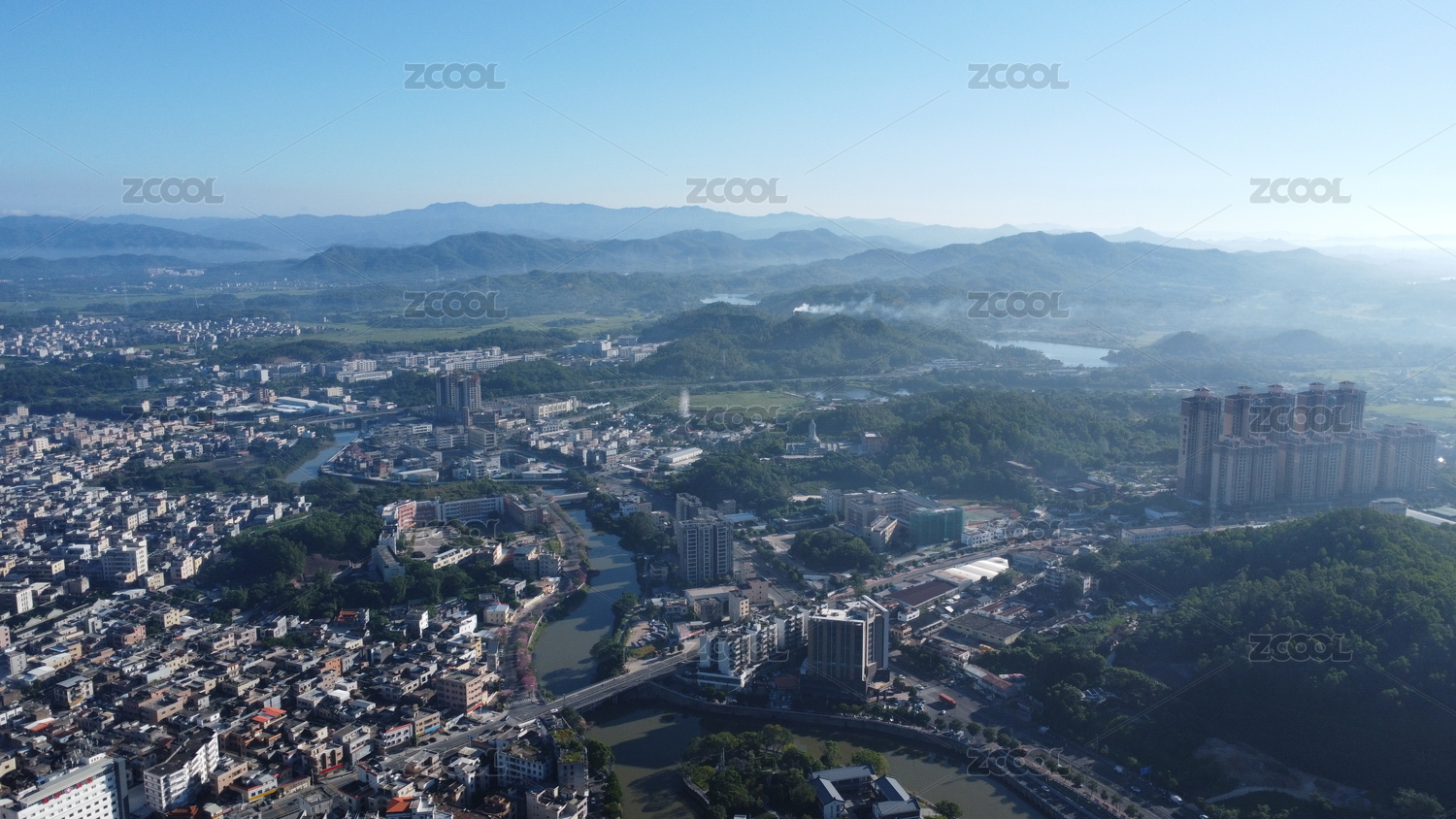 汕尾市陆河县鹰嘴峰县城全景火山嶂航拍