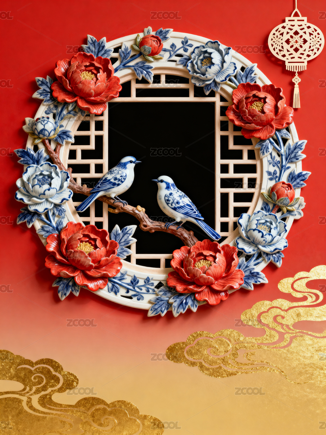 蓝色,红色,金色,云纹,图案,装饰,古典,花朵,背景,传统