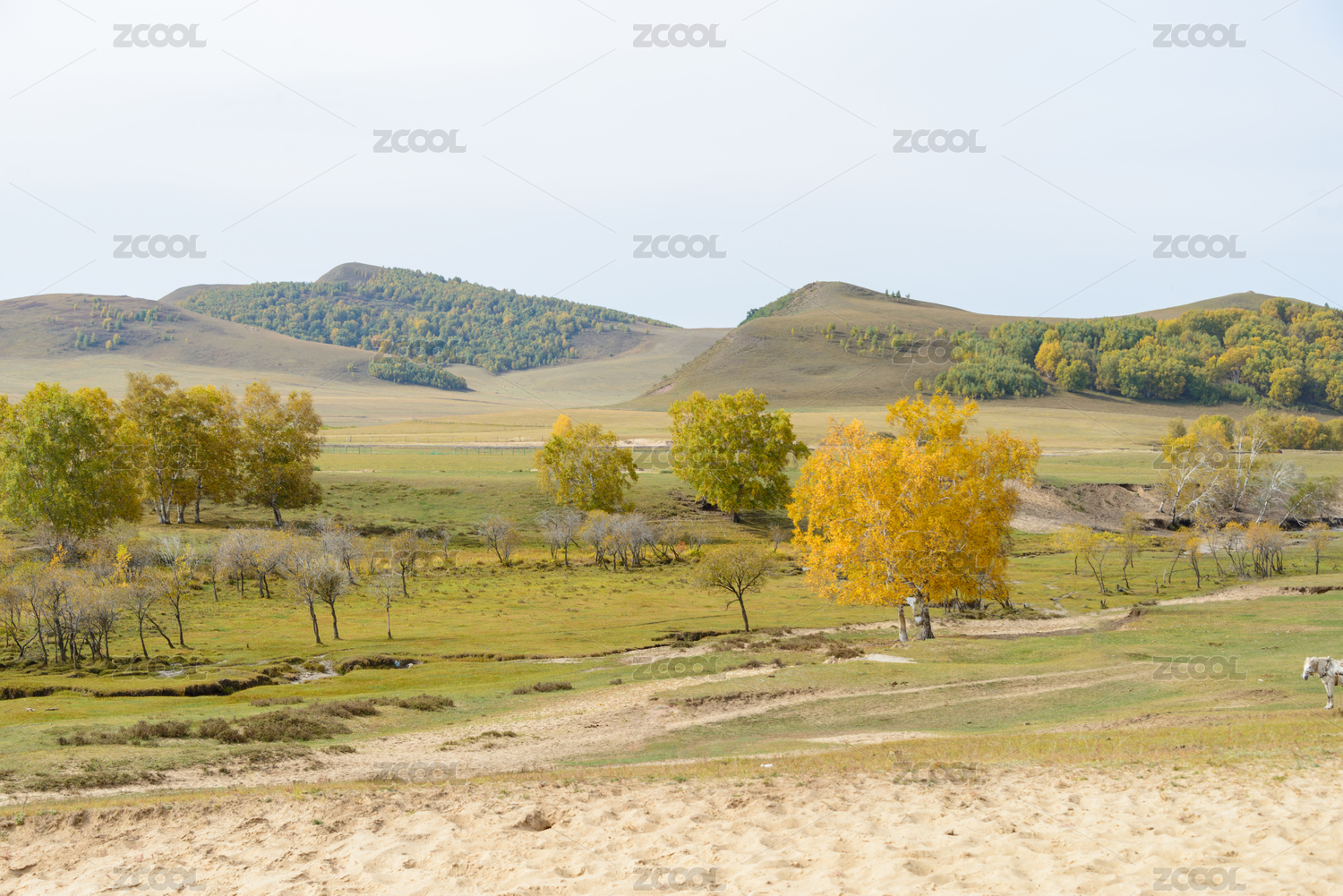 秋天内蒙古乌兰布统坝上草原和白桦林