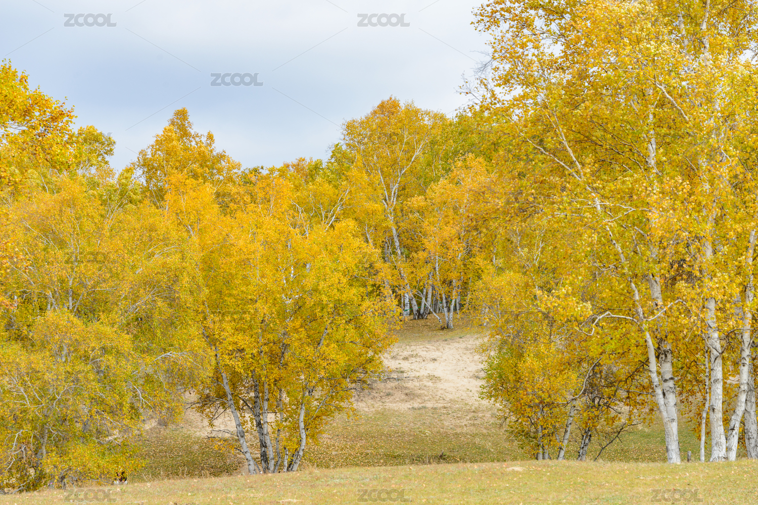 内蒙古黄冈梁秋景金黄的白桦林自然风光