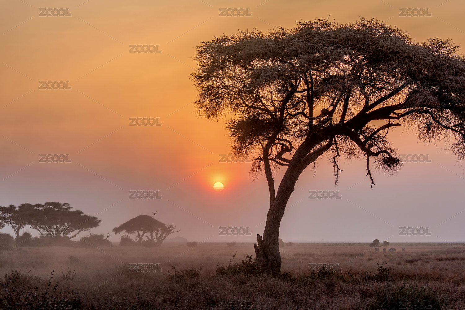 非洲草原的日落剪影