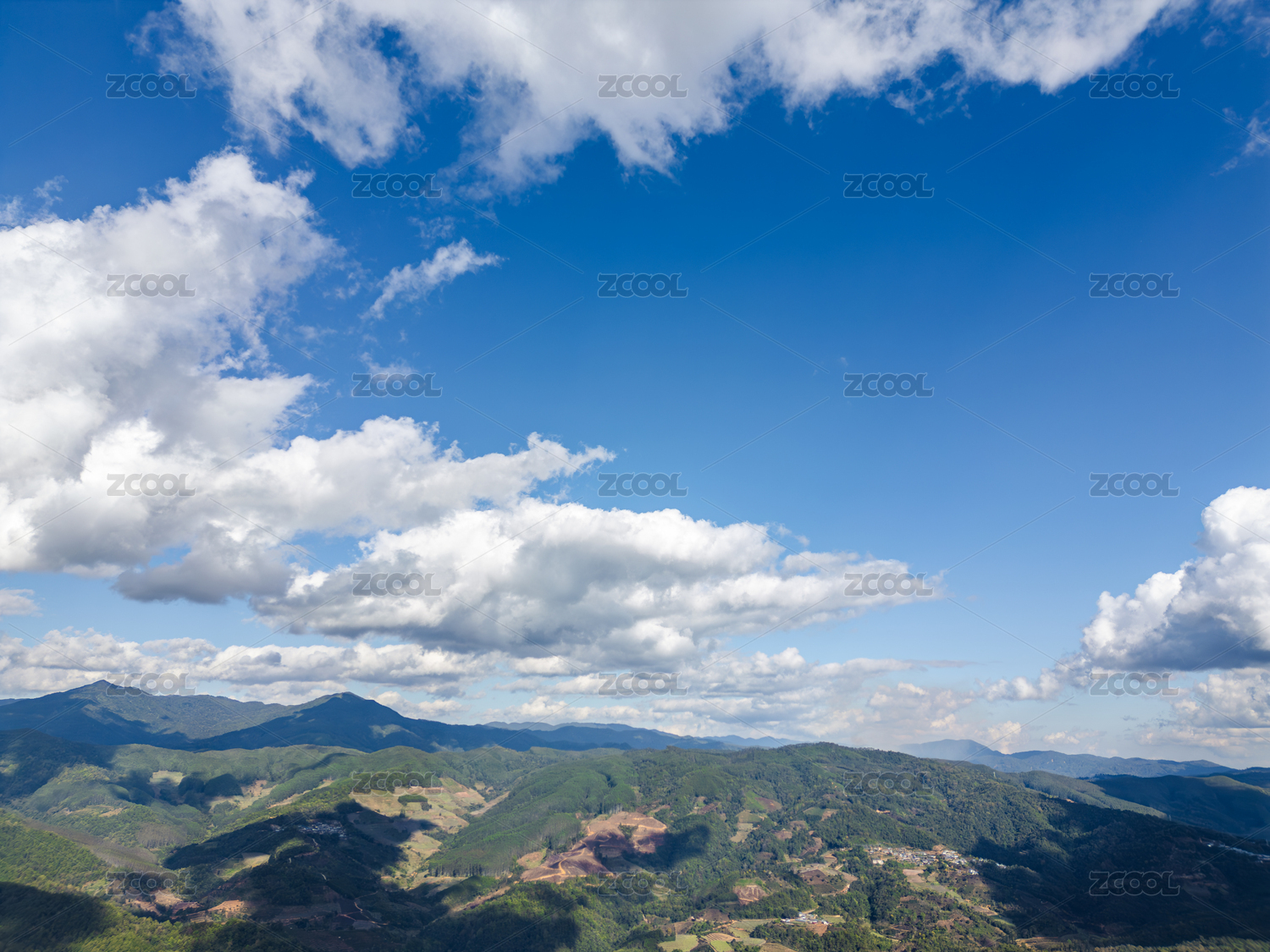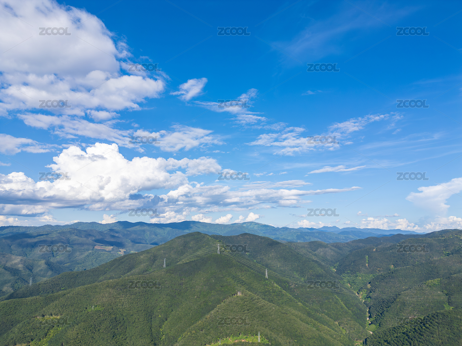 青山,山脉,蓝天,白云,航拍,群山,绿色,山林,生态,晴天