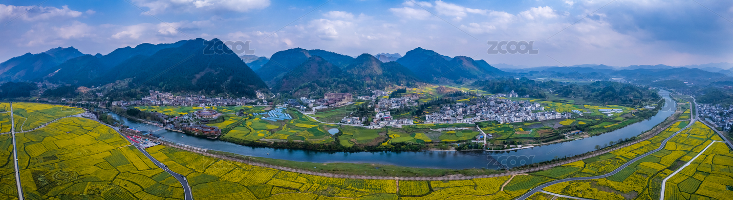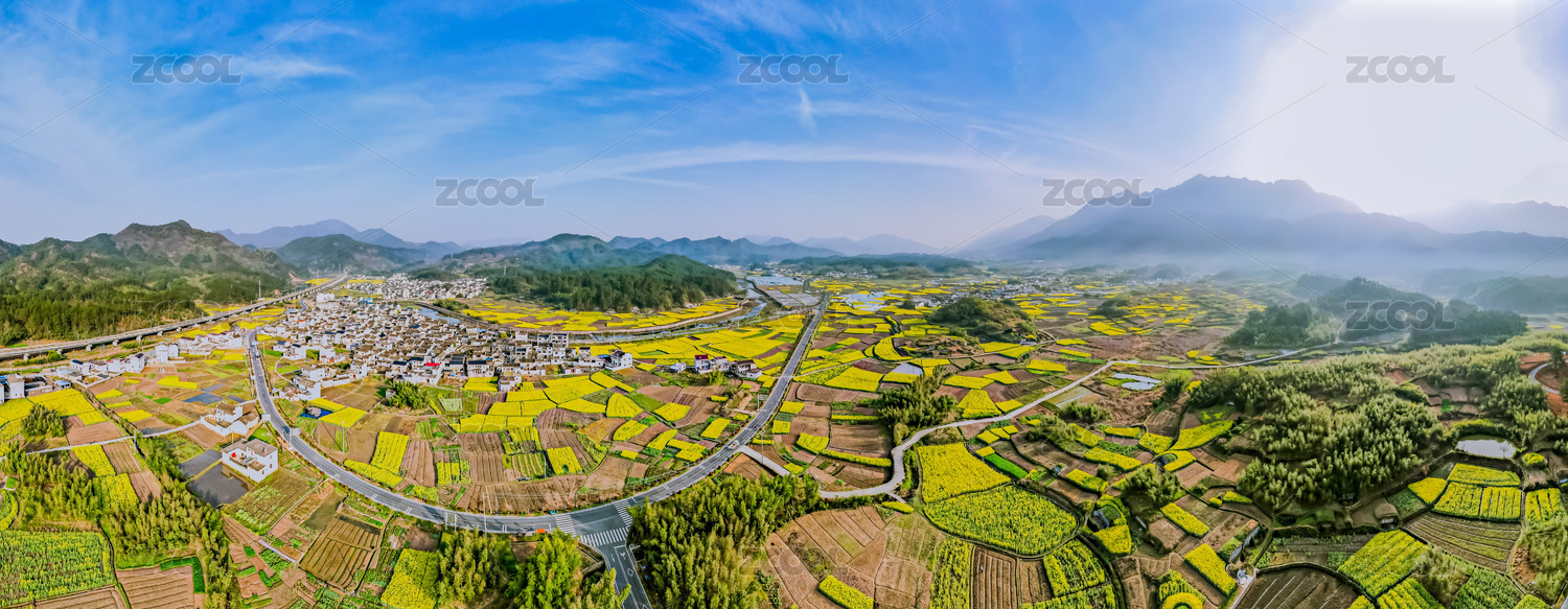 中国安徽省黄山市休宁县荪田村油菜花航拍