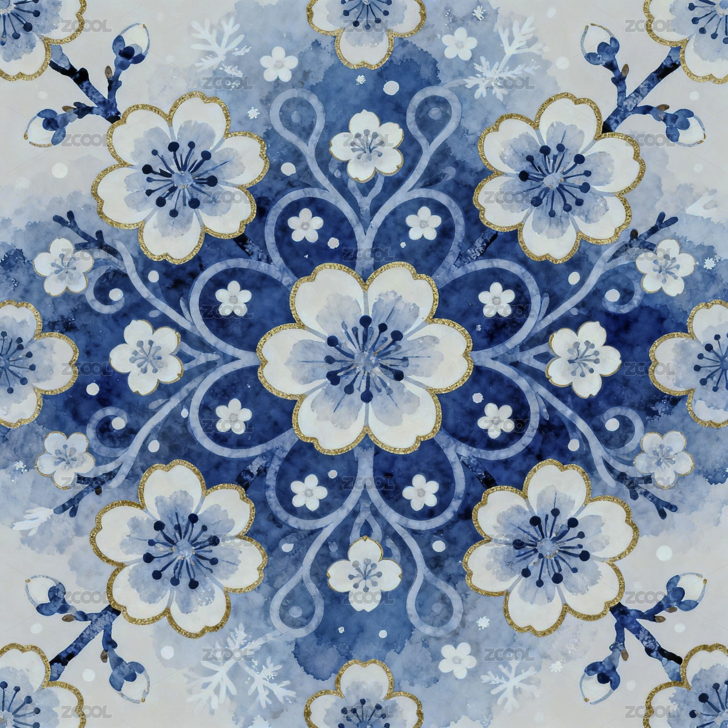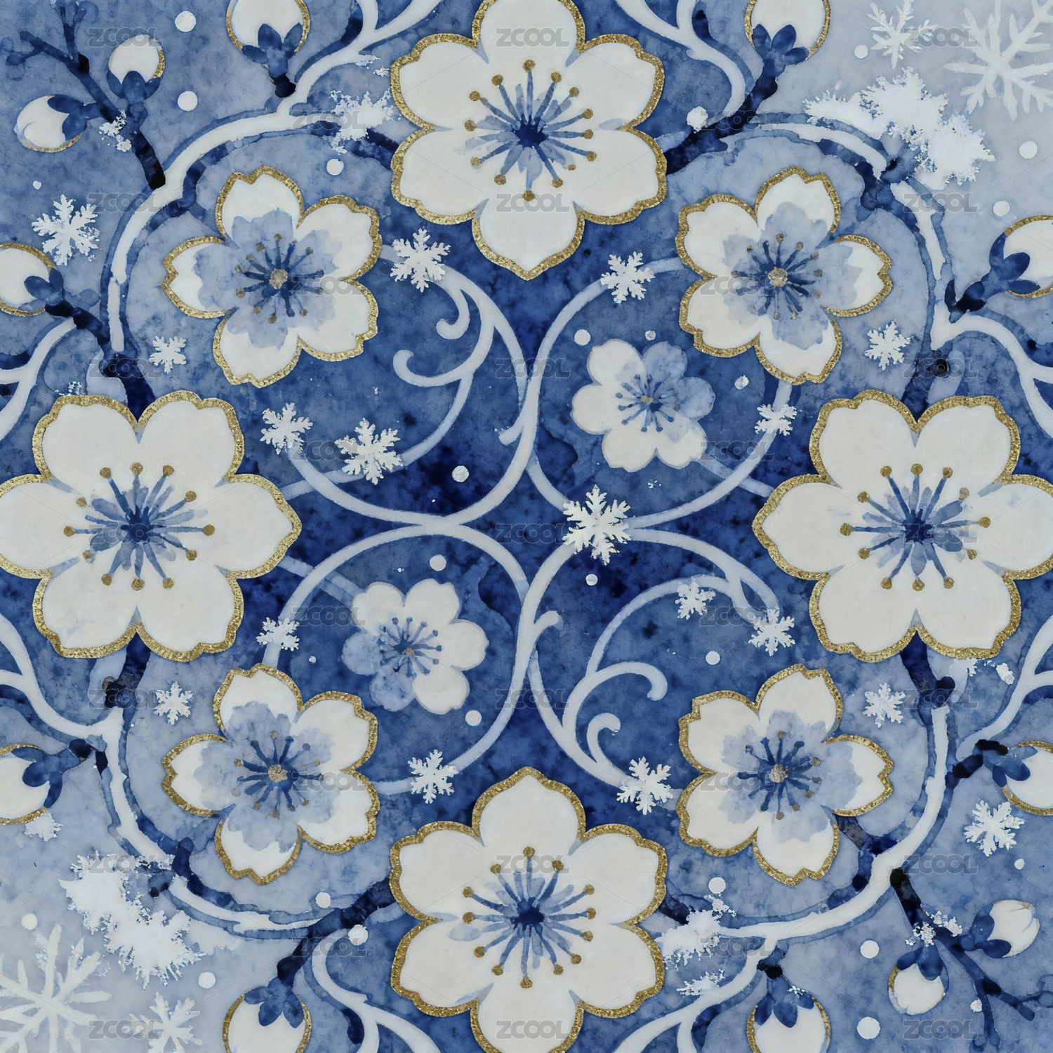 青花瓷,梅花,蓝白,雪花,中国风,图案,花卉,纹样,冬季,传统